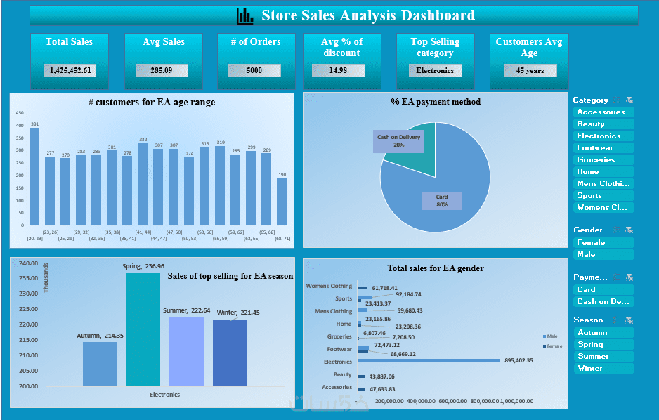 تنظيف و تحليل بيانات متوسطة(حتى 5000 صف) و تصميم (Dashboard) من صفحة واحدة تحتوى على عدد 6 رسم بيانى