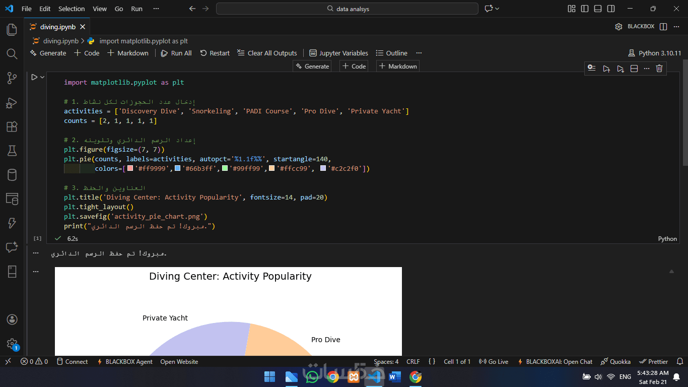 رسومات بيانية تخطف العين: تحويل الجداول المعقدة والبيانات الصماء إلى لوحات مرئية (Matplotlib, Seaborn) يسهل على الإدارة فهمها فوراً لاتخاذ قرارات حاسمة.