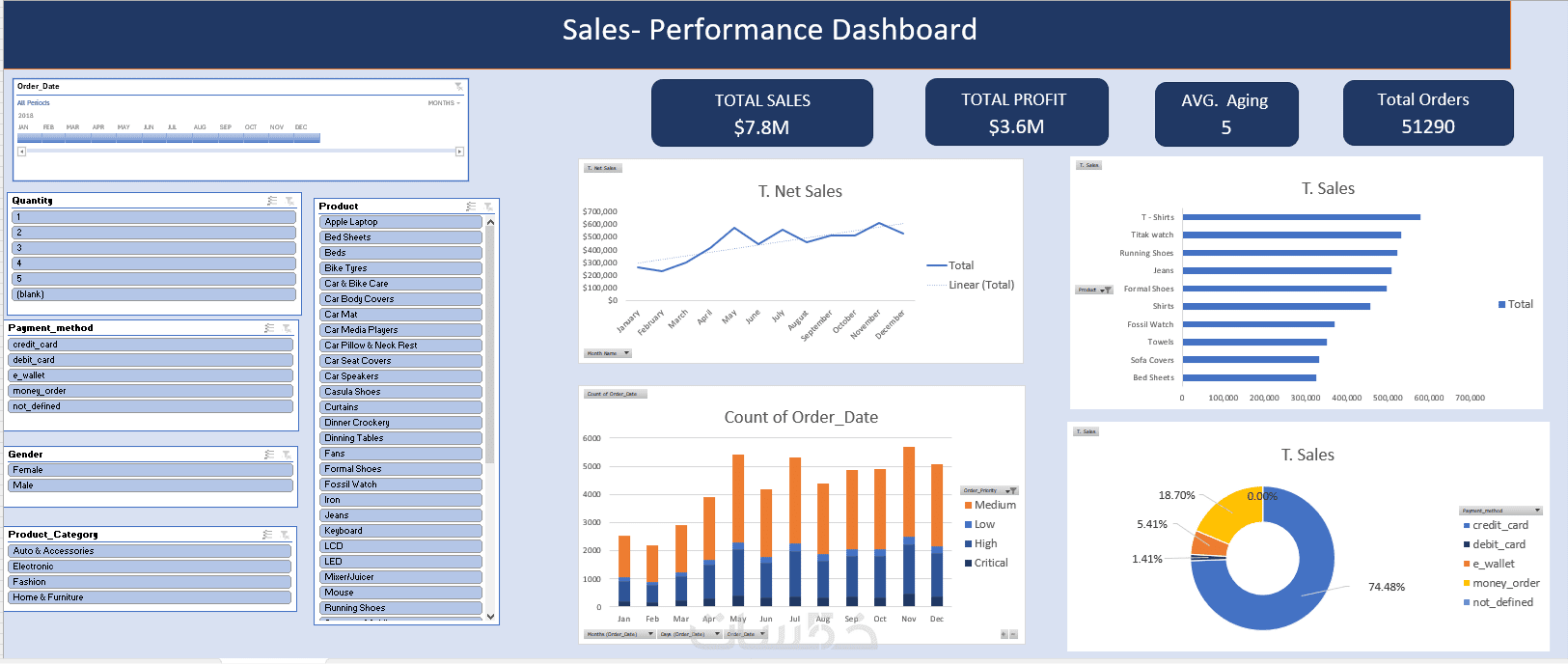 _ستستلم ملف اكسل (xlsx) يحتوي علي الداشبورد و جداول محوريه