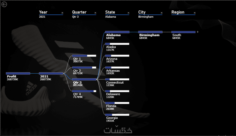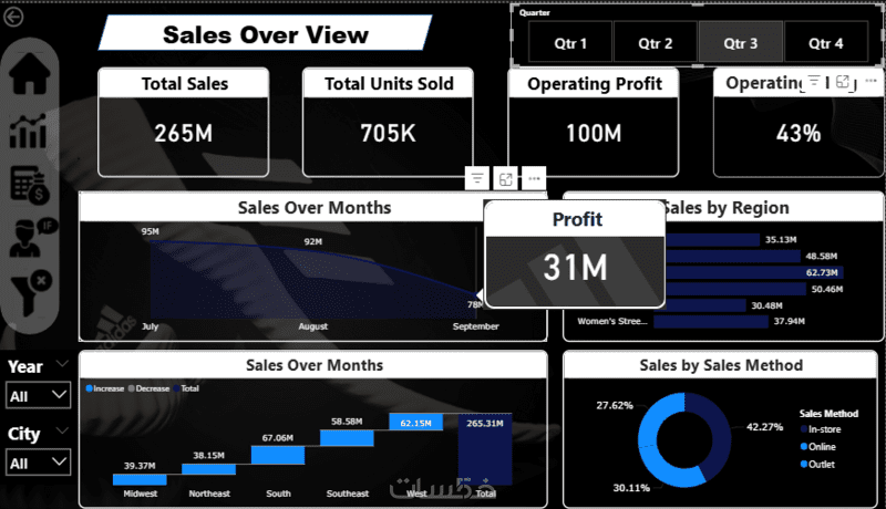 لوحات تفاعلية بالكامل: تزويد اللوحات بأدوات تصفية البيانات (Filters) والمقسمات (Slicers) لتمكينك من استعراض البيانات من زوايا مختلفة.