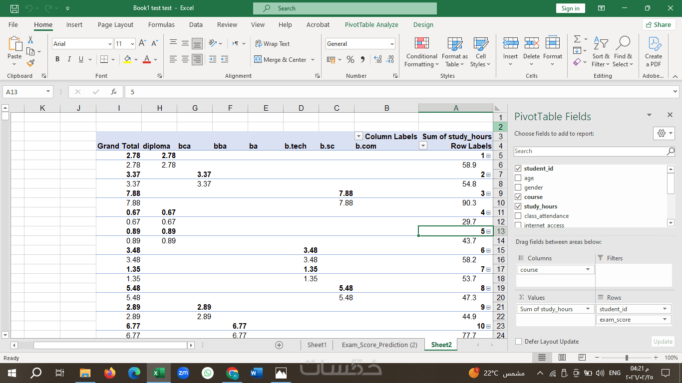 Microsoft Excel (تحليل متقدم + Pivot Tables)