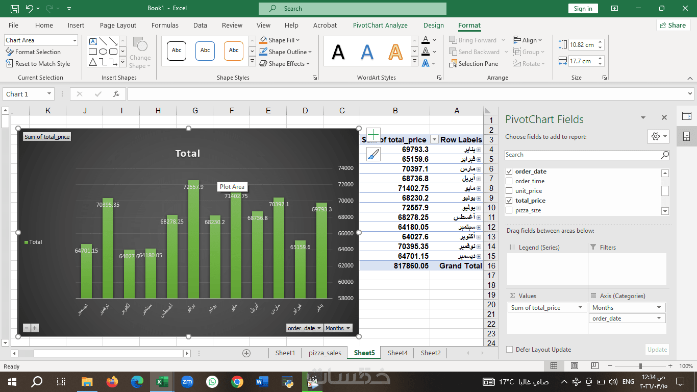تحليل المبيعات الشهرية والسنوية