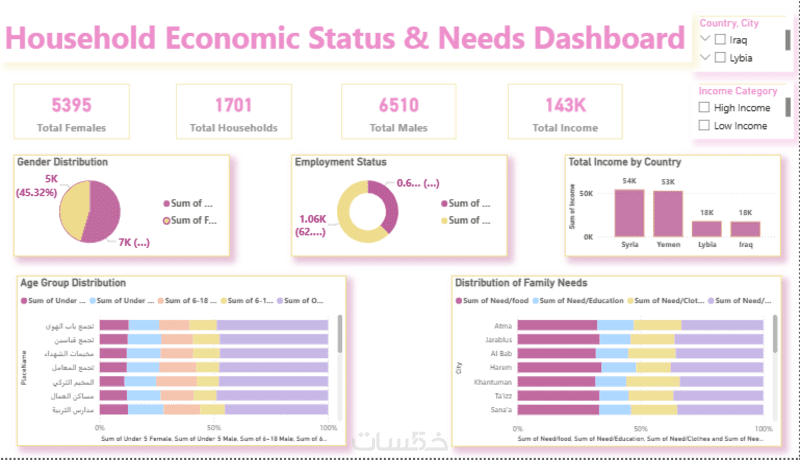 سأقوم بتصميم لوحات تحكم (Dashboards) تفاعلية واحترافية باستخدام Power BI، مخصصة تماماً لتناسب طبيعة عملك وأهدافك