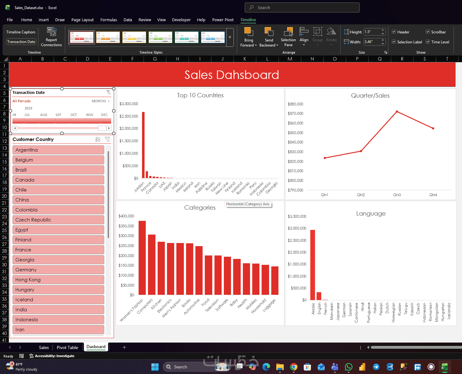انشاء Dashboard اضافي يحتوي علي 4 مخططات وفلتر تفاعلية