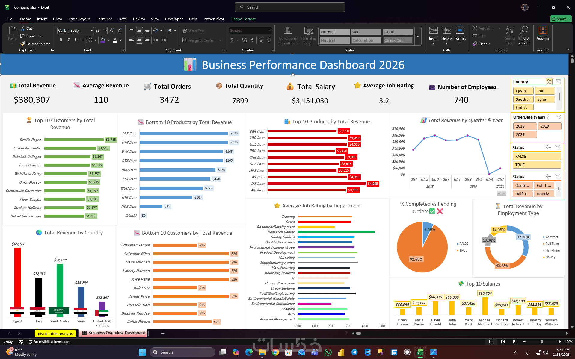 أقوم بتحليل البيانات باستخدام Microsoft Excel وتحويلها إلى تقارير واضحة ولوحات معلومات تفاعلية تساعدك على فهم بياناتك واتخاذ قرارات دقيقة.