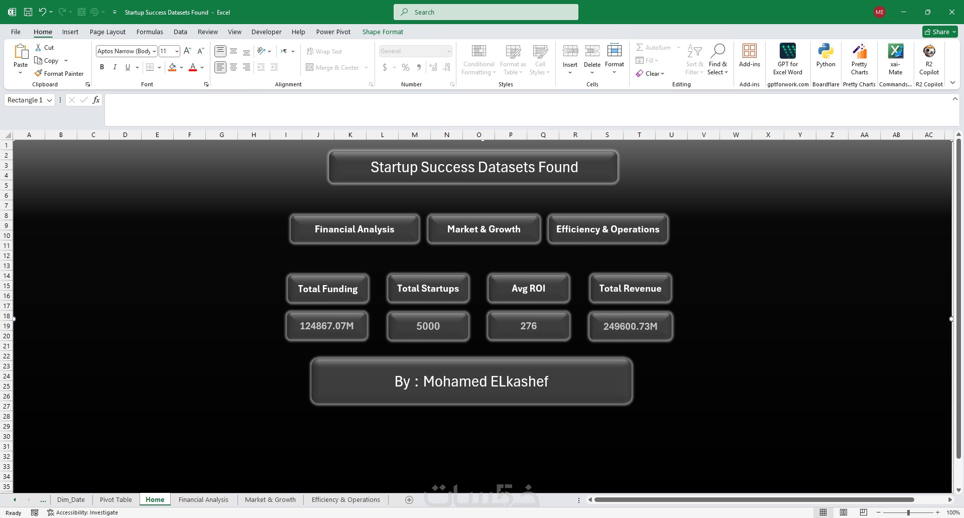 واجهة مستخدم (Home Page): صفحة رئيسية احترافية تحتوي على أزرار تنقل سهلة بين شيتات العمل (Navigation System).