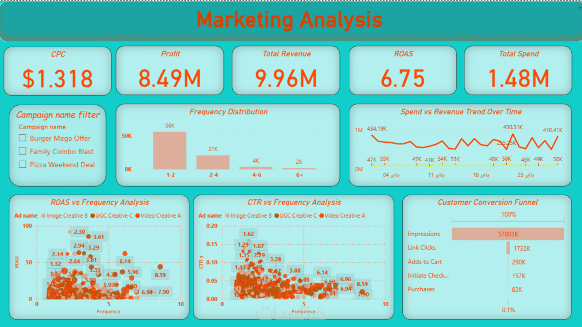 هذا الـ Dashboard يربط بين الأقسام المختلفة ويكشف أي تسريبات للربح أو فرص نمو