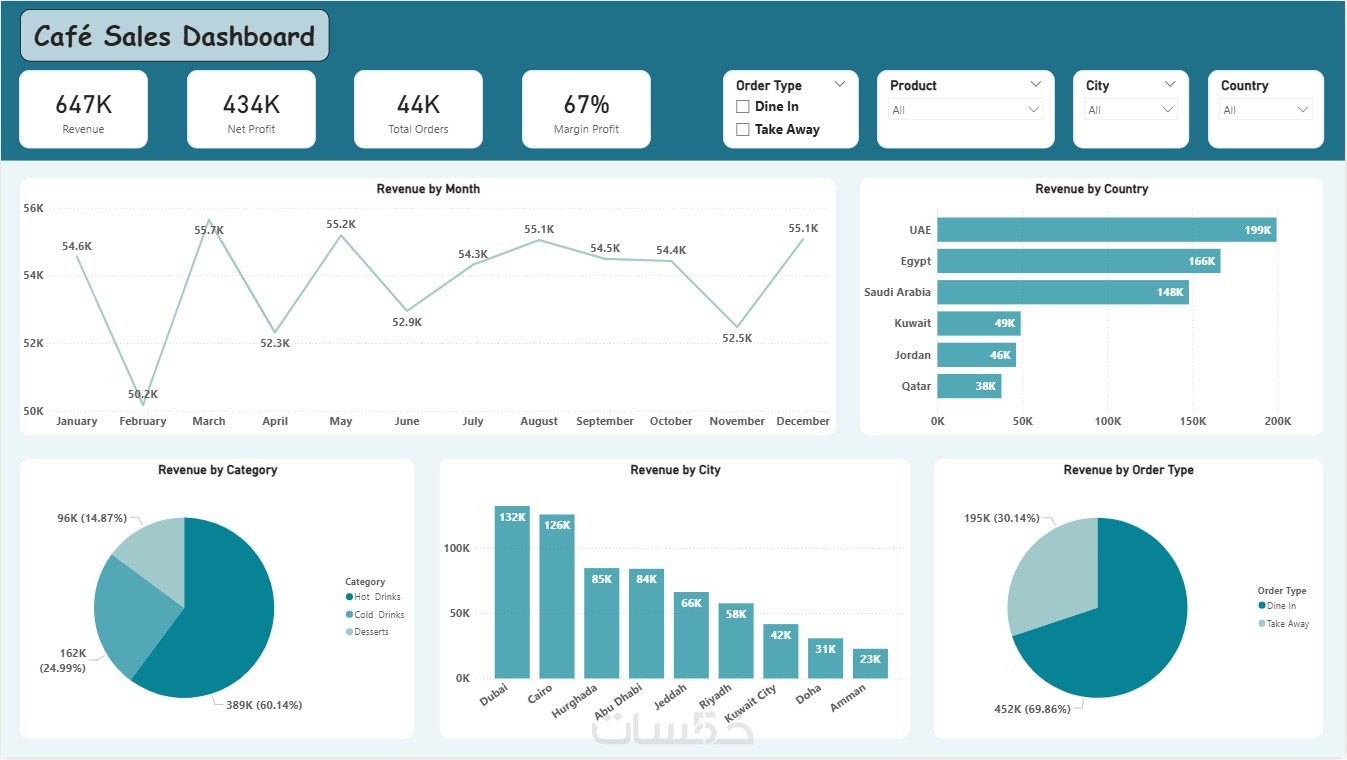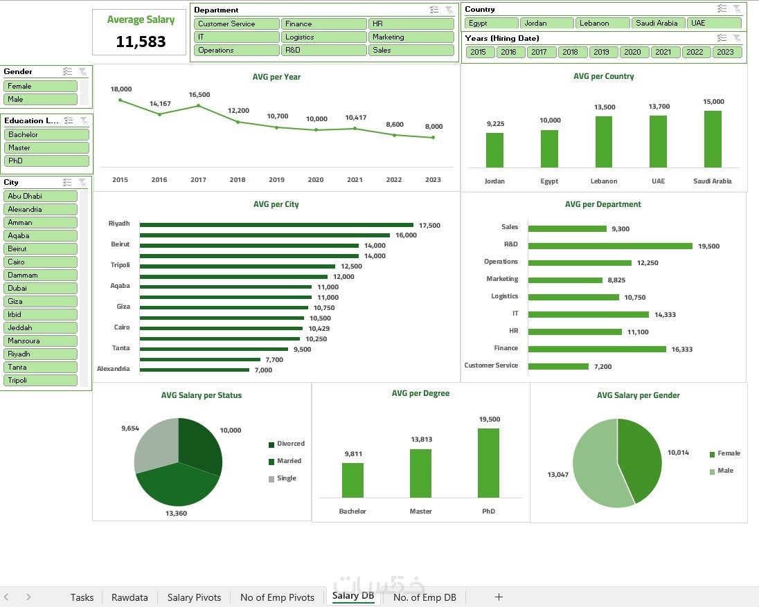 ملف الـ PBIX (الخاص بـ Power BI) أو ملف الـ Excel النهائي يشمل 6 رسوم بيانية.