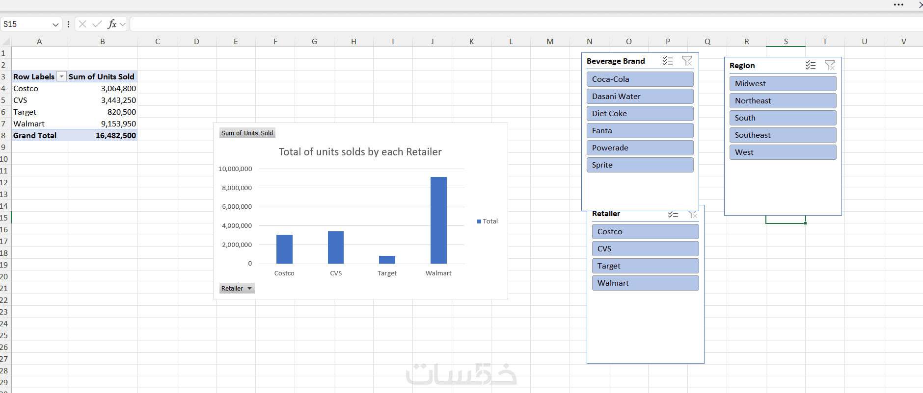 مثل charts ,piviot table,power query و functions مثل (XLOOKUP,TEXT,SUMIFS,..)