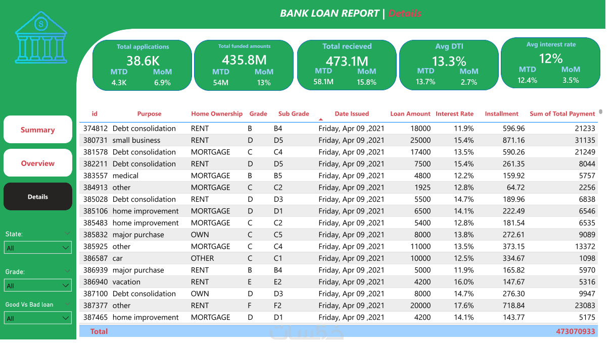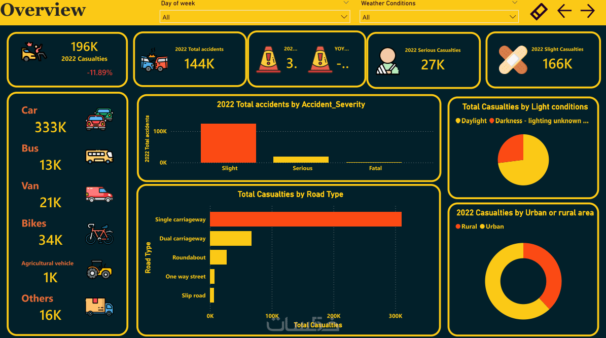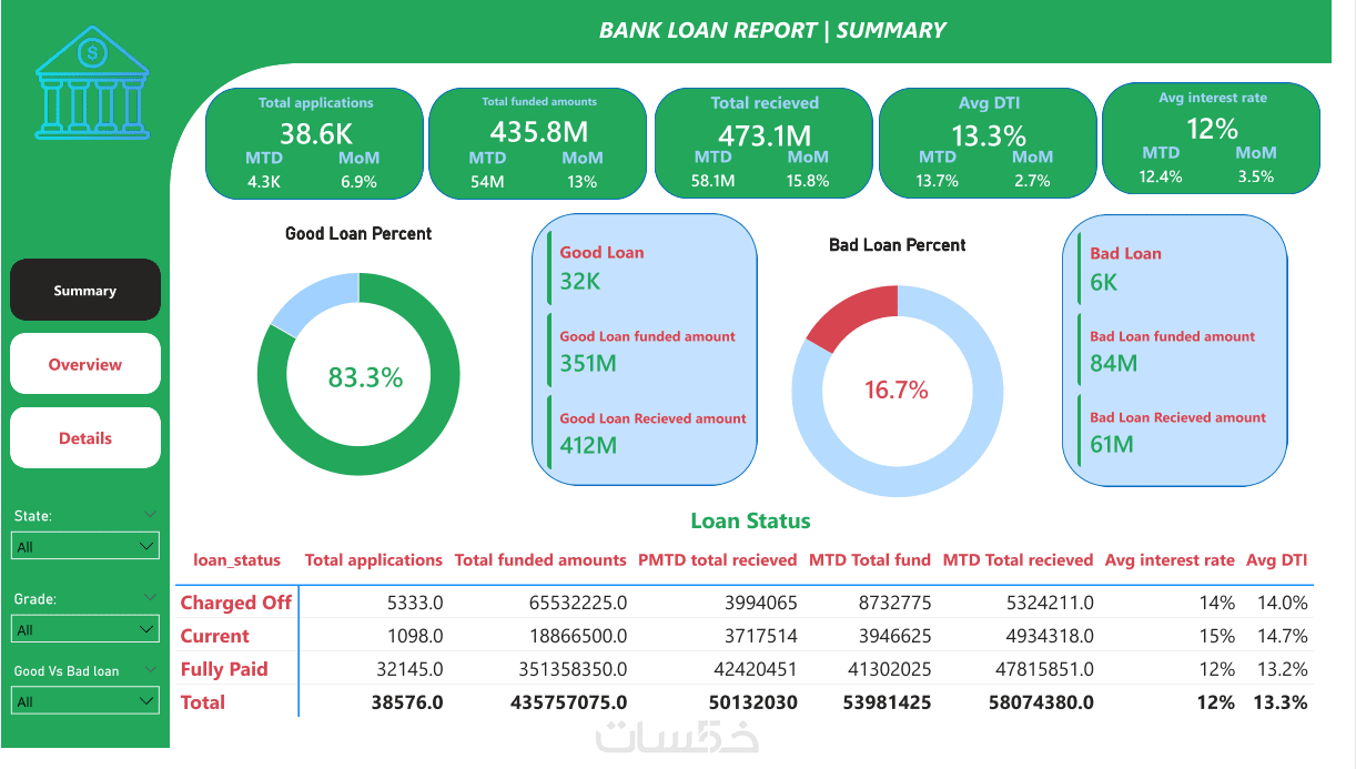 - تحليلات DAX: إنشاء مقاييس حسابية لمراقبة الأداء (KPIs) ونسب النمو.