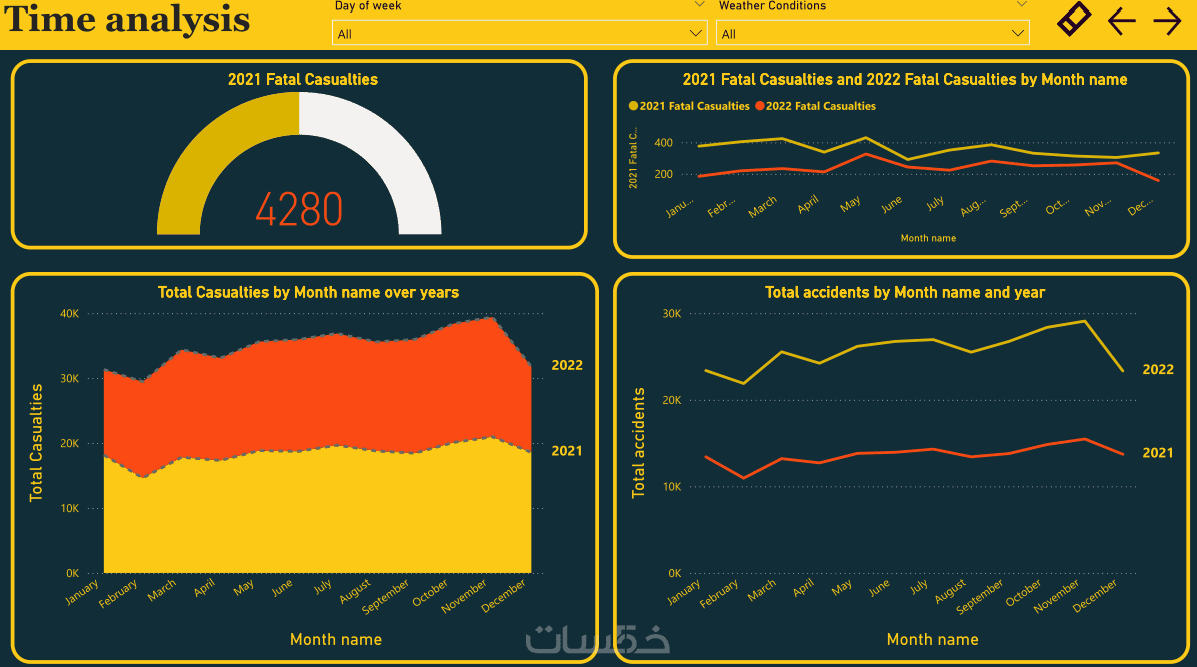 - تصميم صفحة داشبورد واحدة تحتوي على 4 رسوم بيانية تفاعلية.