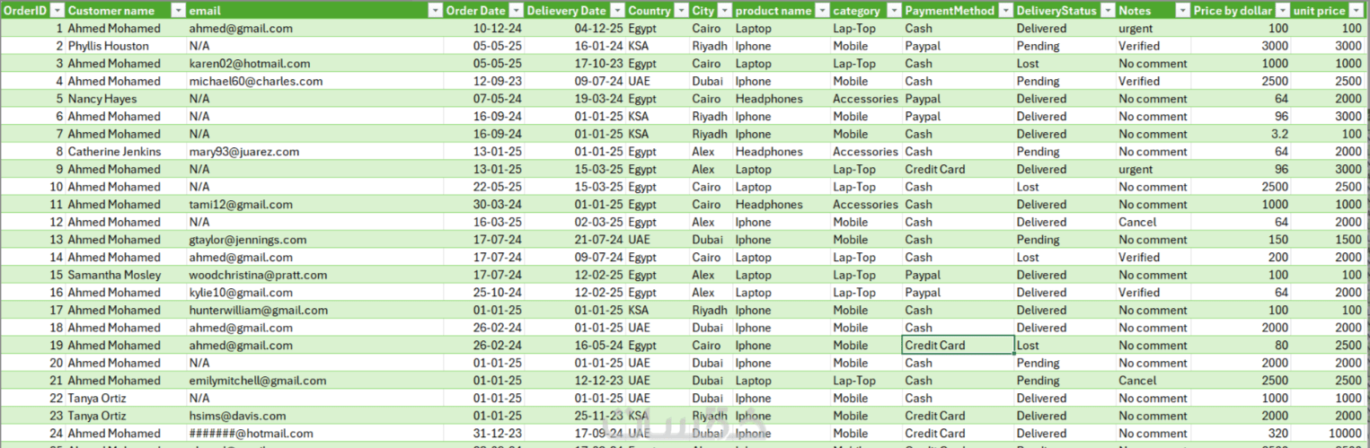 ملف بيانات نظيف ومنظم، خالٍ من التكرارات والقيم المفقودة، ومجهز بشكل احترافي للتحليل أو العرض
