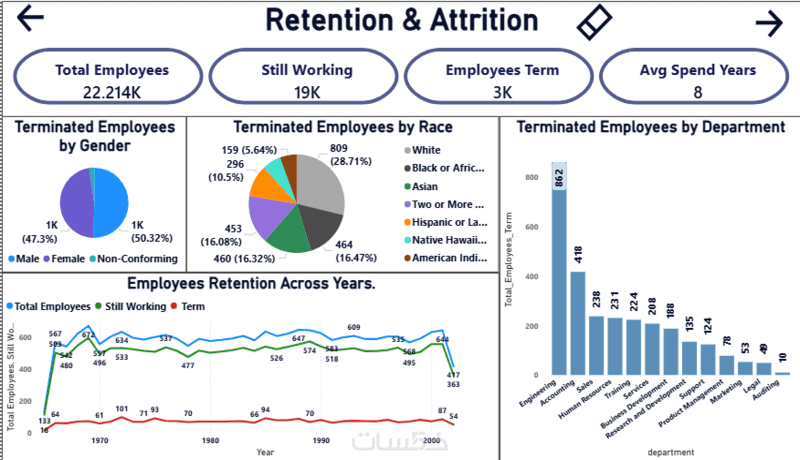 توزيع بصري مريح للعين يركز على مؤشرات الأداء الرئيسية (KPIs).