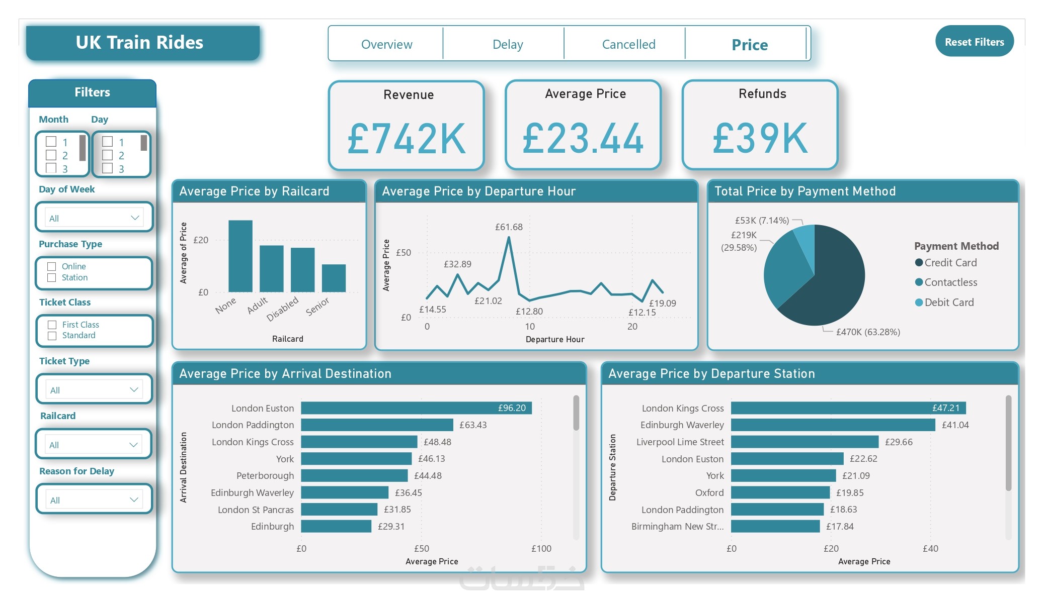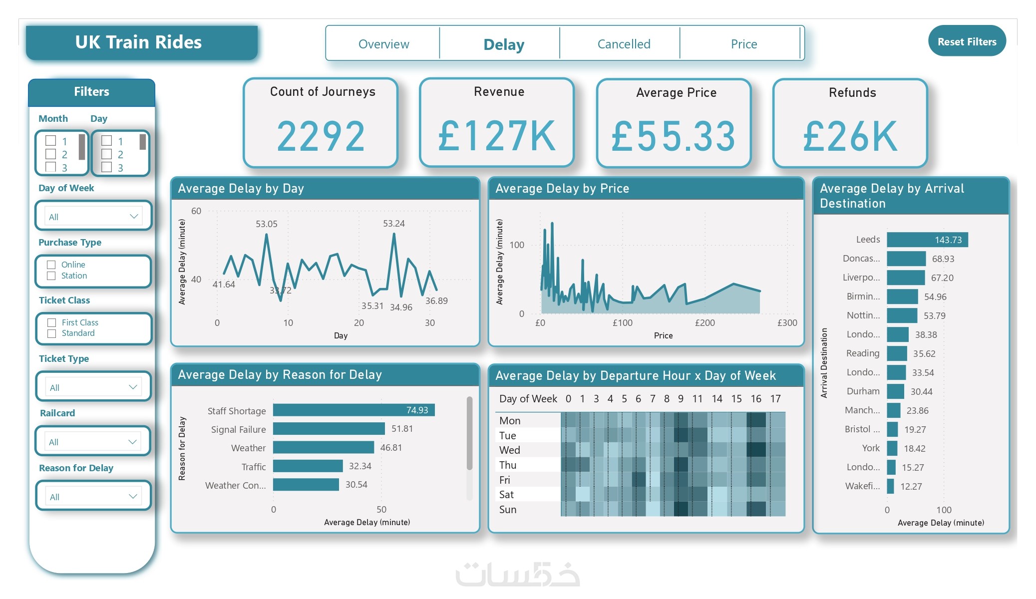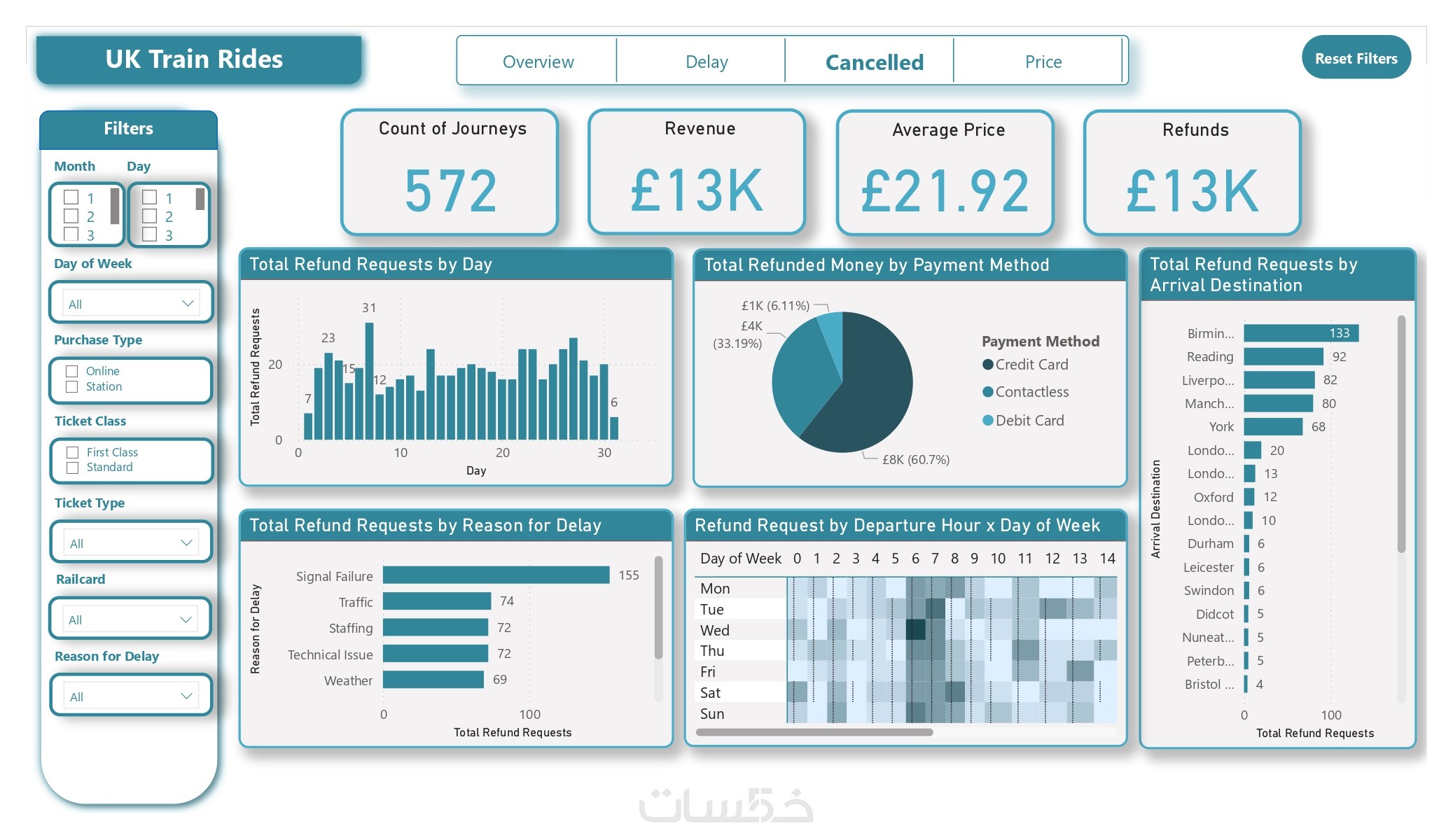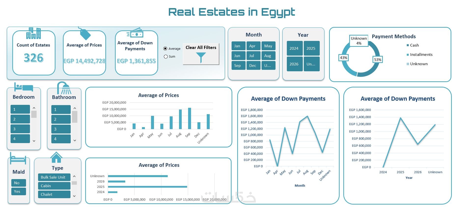 عرض شامل لكل ما يفيد في البيانات حتى يسهل اتخاذ القرار وفقًا للبيانات المتاحة، مع وجود الفلاتر slicers التي تمكن من التحكم الكلي في البيانات.
