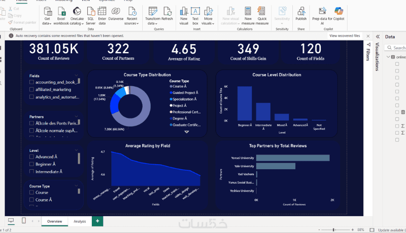 أساعدك في تحويل بياناتك الخام إلى لوحات تفاعلية (Dashboards) احترافية باستخدام Power BI، تمكنك من متابعة أدائك واتخاذ قراراتك بناءً على أرقام دقيقة ورسوم بيانية واضحة.