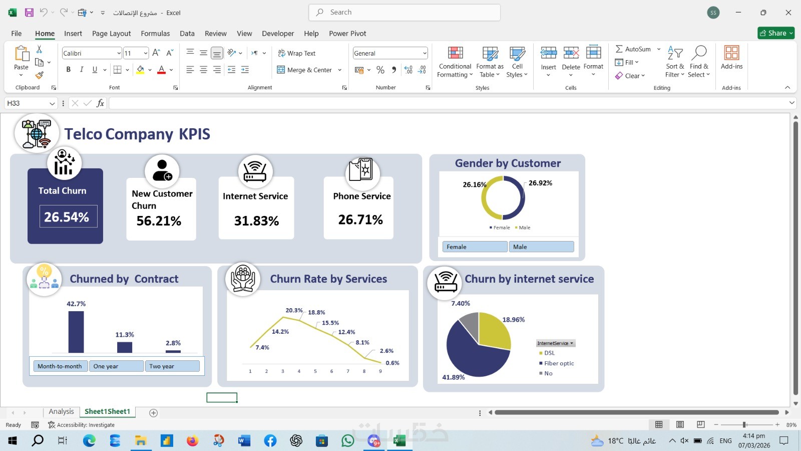 ملف Excel يحتوي على Dashboard تفاعلي