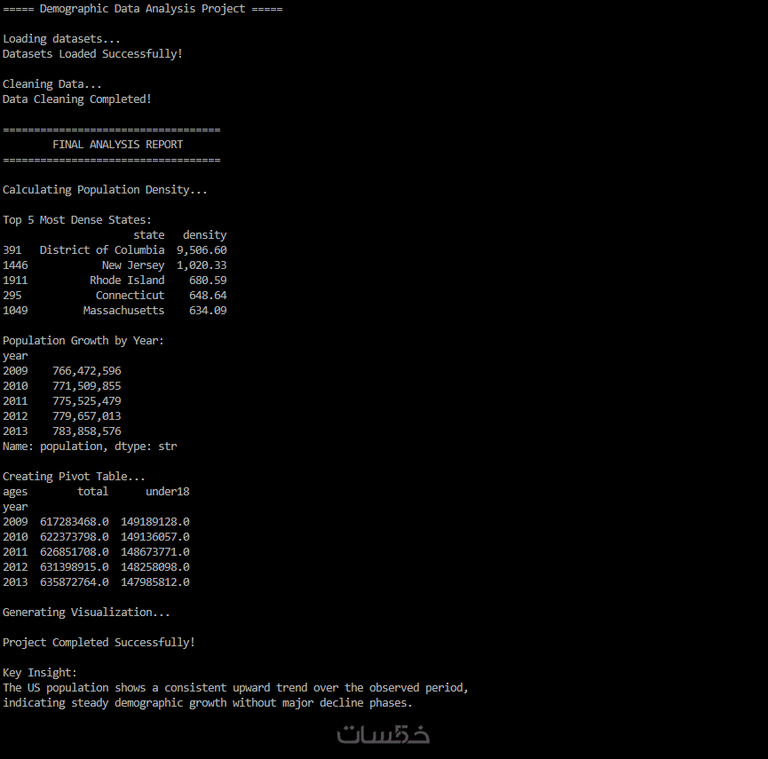 ملخص بالنتائج والمعلومات المستخرجة من البيانات.