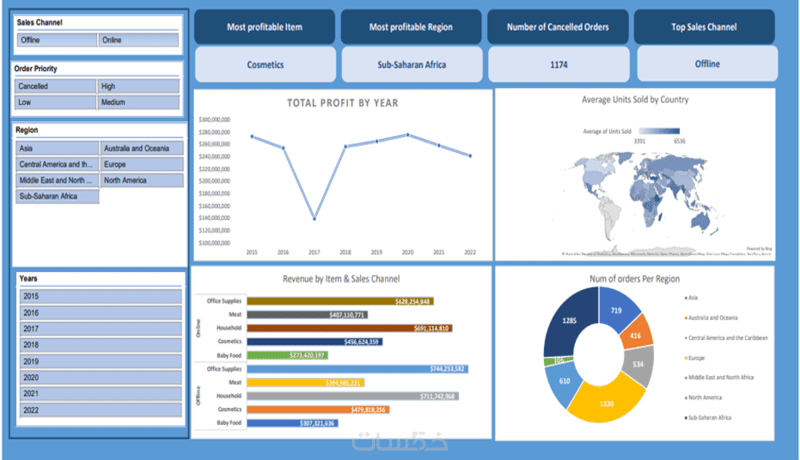 داشبورد متكامل على Excel (لوحات/Charts/جداول تلخيصية).