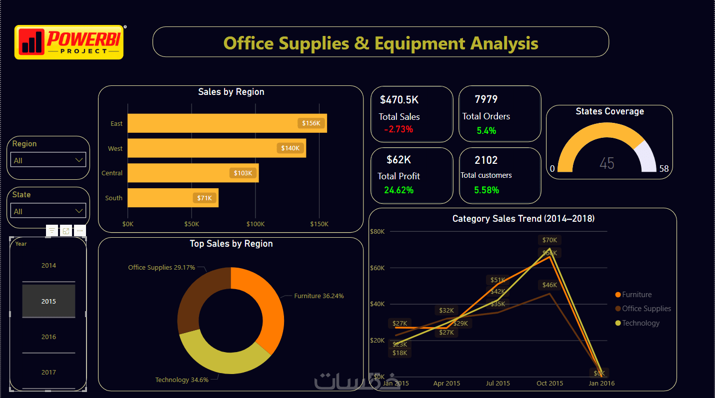 لوحات تحكم Power BI احترافية: تصميم داشبورد تفاعلي يركز على تجربة المستخدم (UI/UX) مع اعتماد ثيمات عصرية (مثل Neon و Dark Mode).
