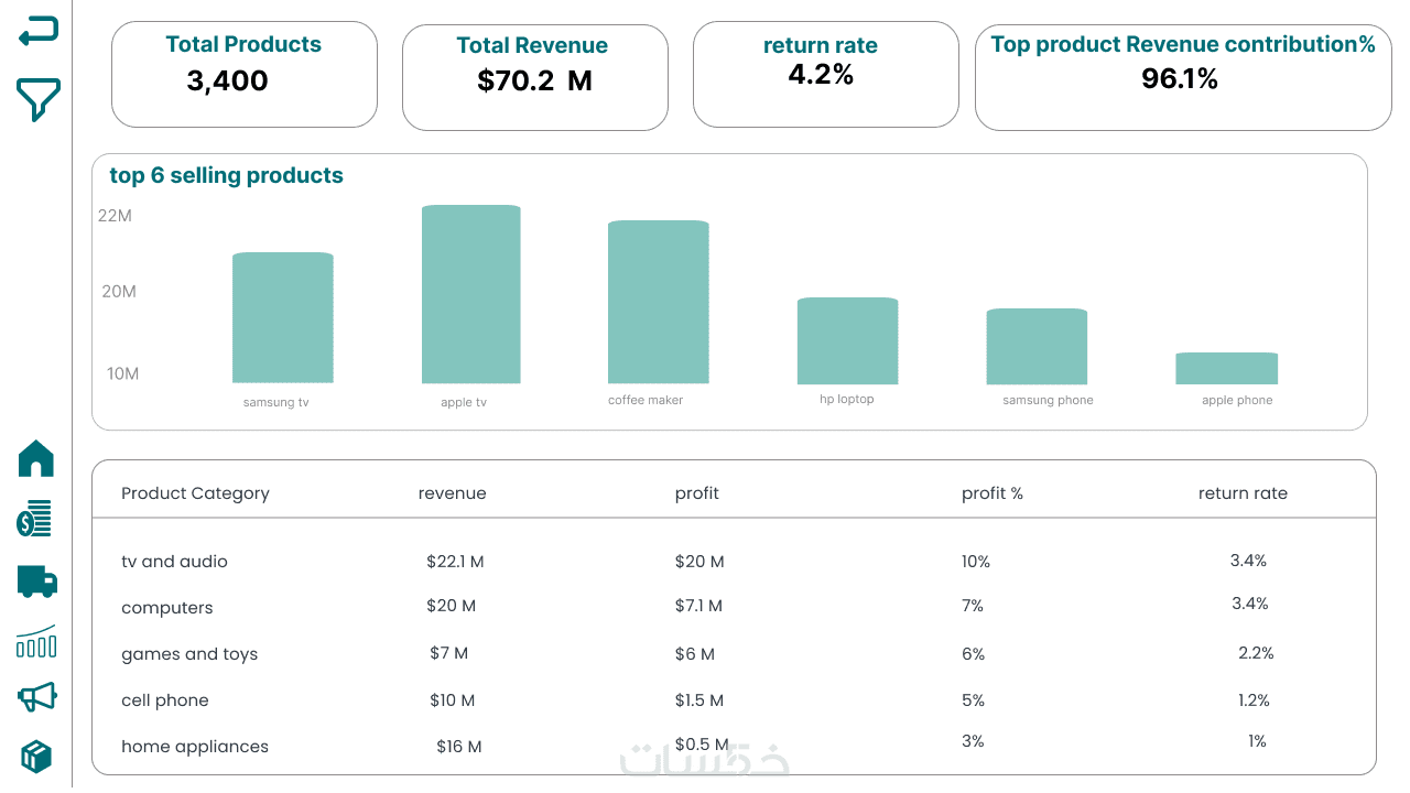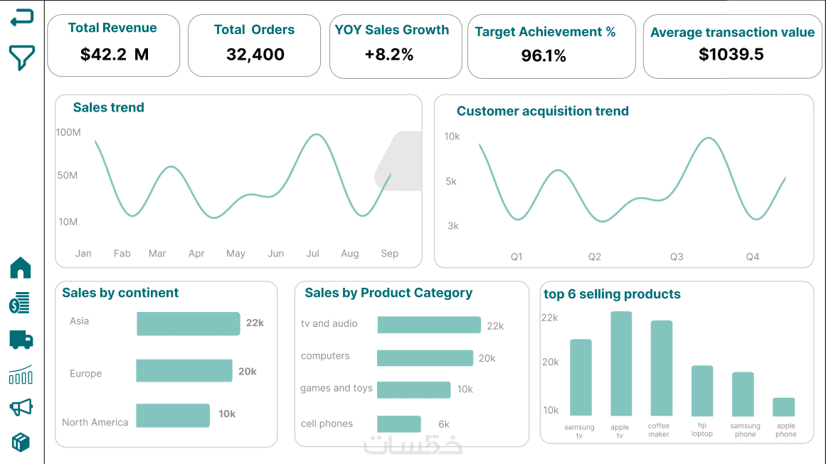• KPI Cards تعرض أهم الأرقام دفعة واحدة