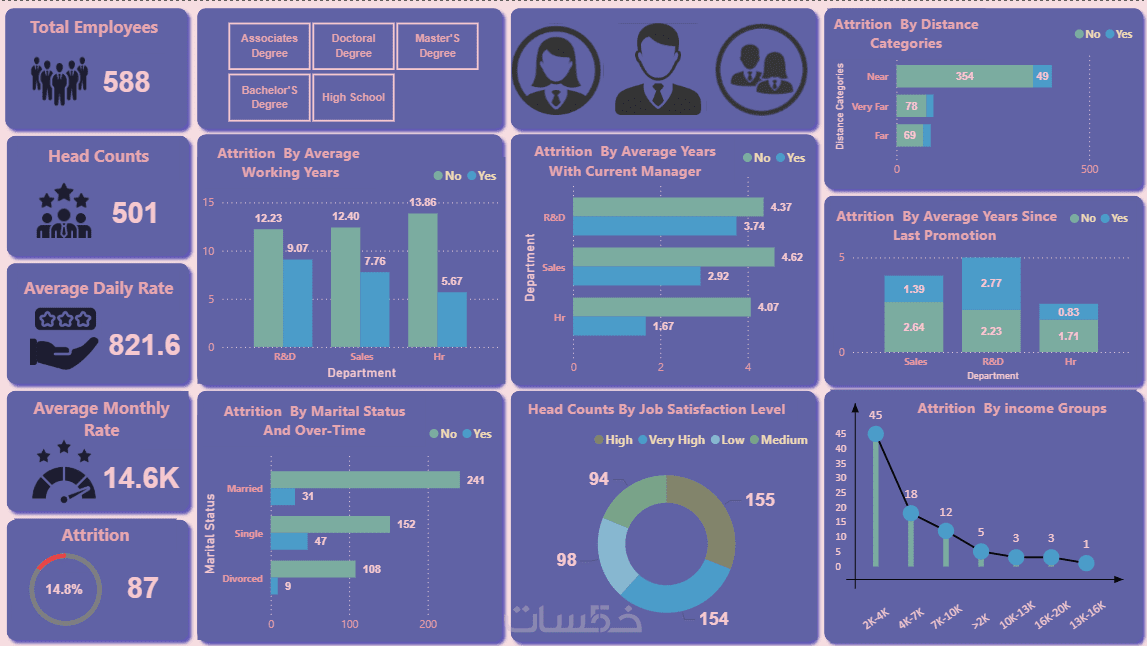 تصميم داشبورد ديناميكي يعرض أهم المؤشرات (KPIs).