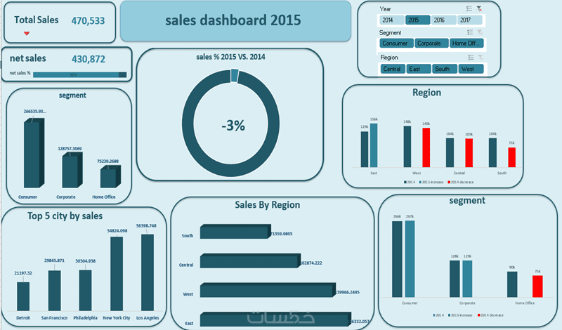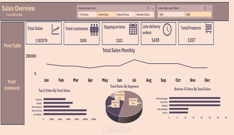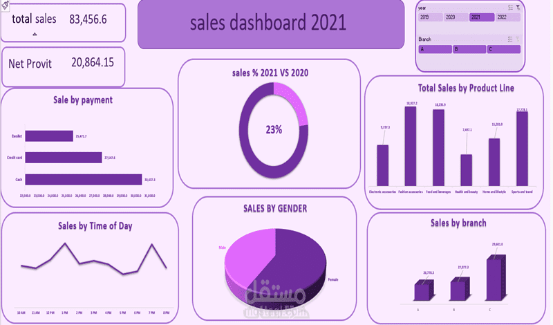 تصميم Dashboard يحتوي على 5 رسوم بيانية