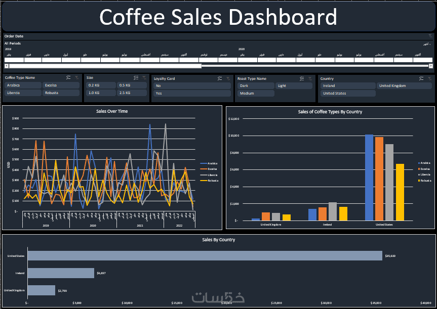 إضافة فلاتر (Slicers) وجداول زمنية (Timelines) للتنقل بين التواريخ والمناطق والمنتجات بسهولة.
