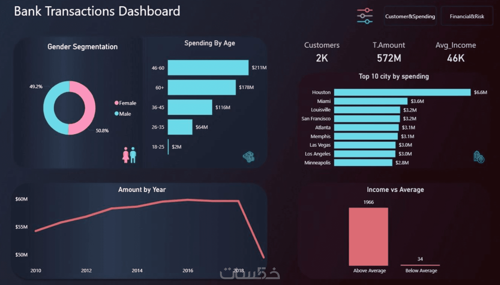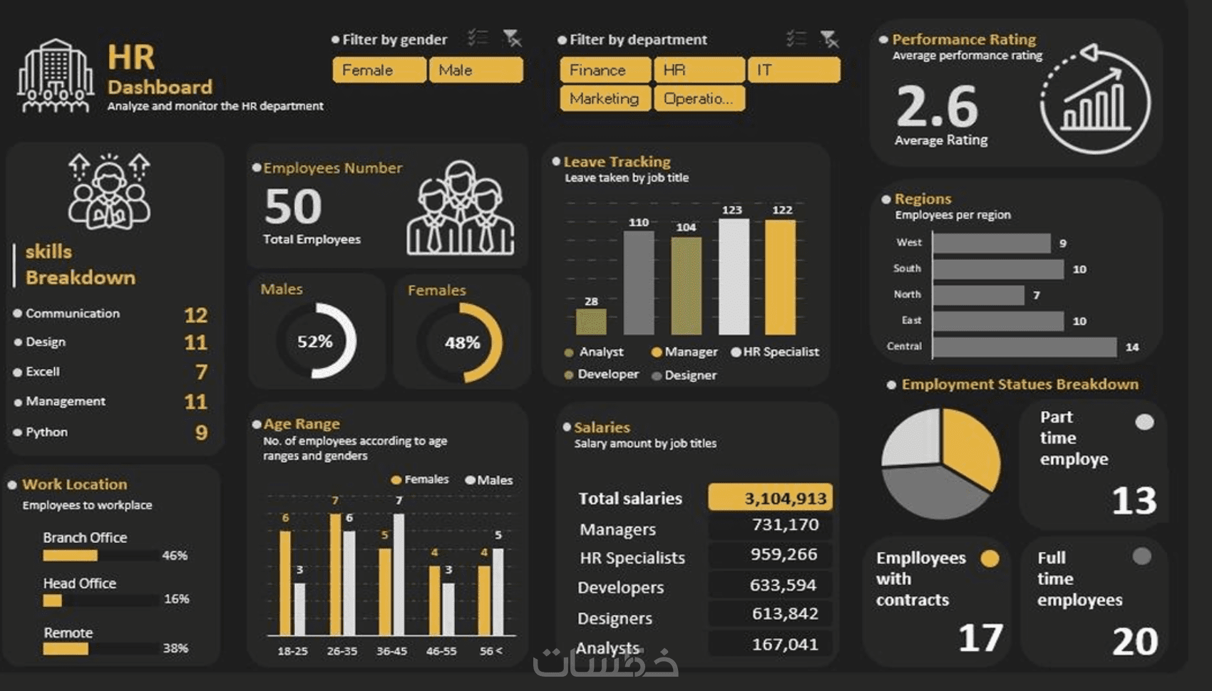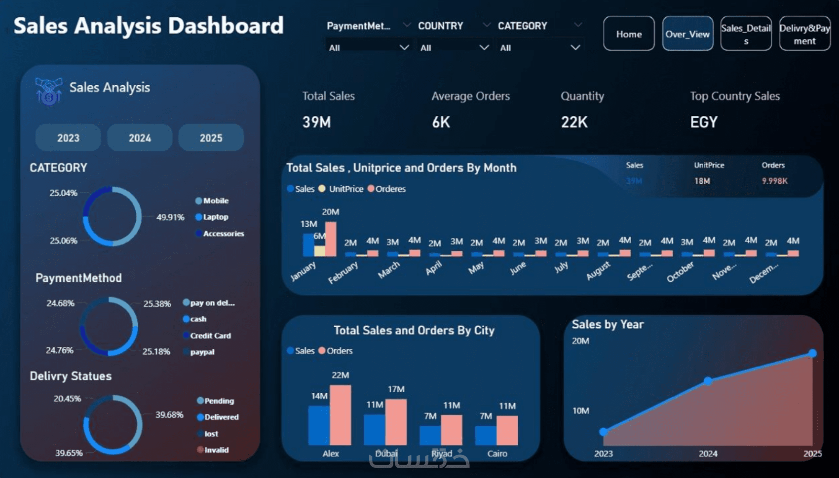 تفاعلية حقيقية: استخدام الـ Slicers لفلترة البيانات لحظياً بضغطة زر واحدة (كما في الصورة المرفقة).
