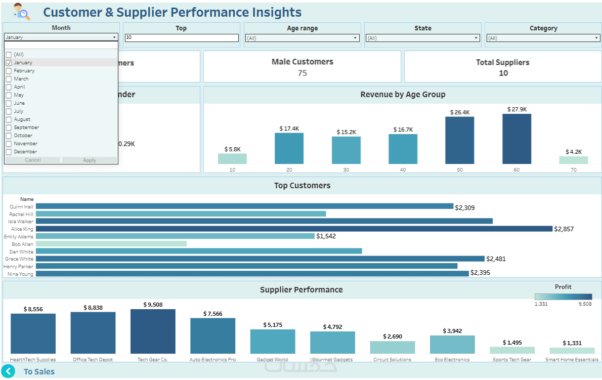 أقدم لك خدمة تصميم وإنشاء لوحات قيادة تفاعلية وذكية باستخدام أفضل أدوات تحليل البيانات Tableau.