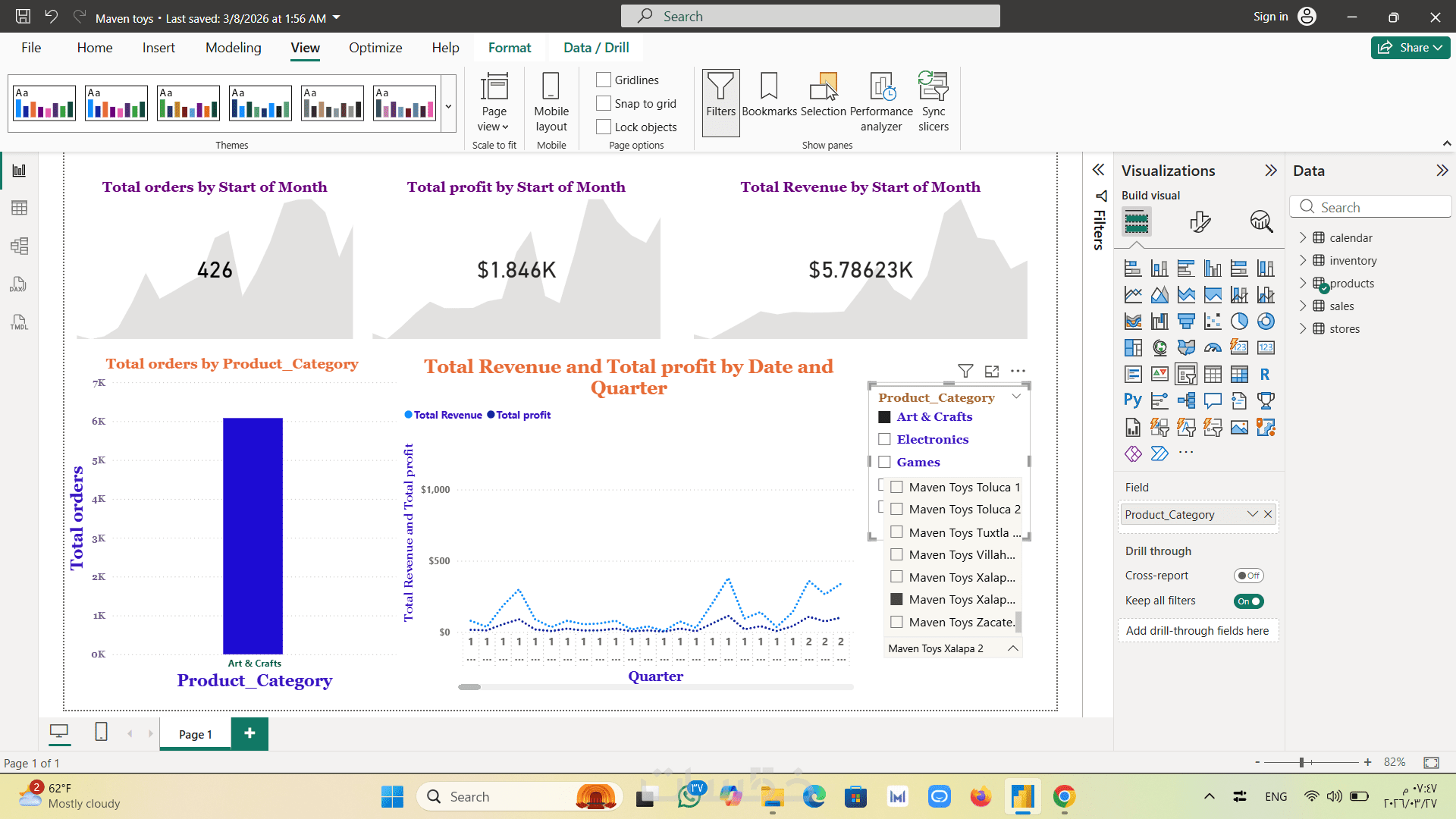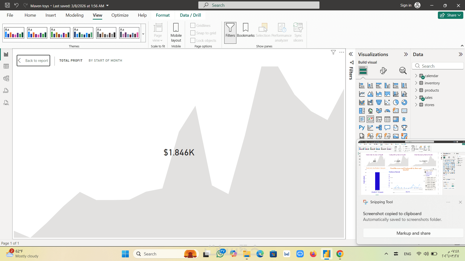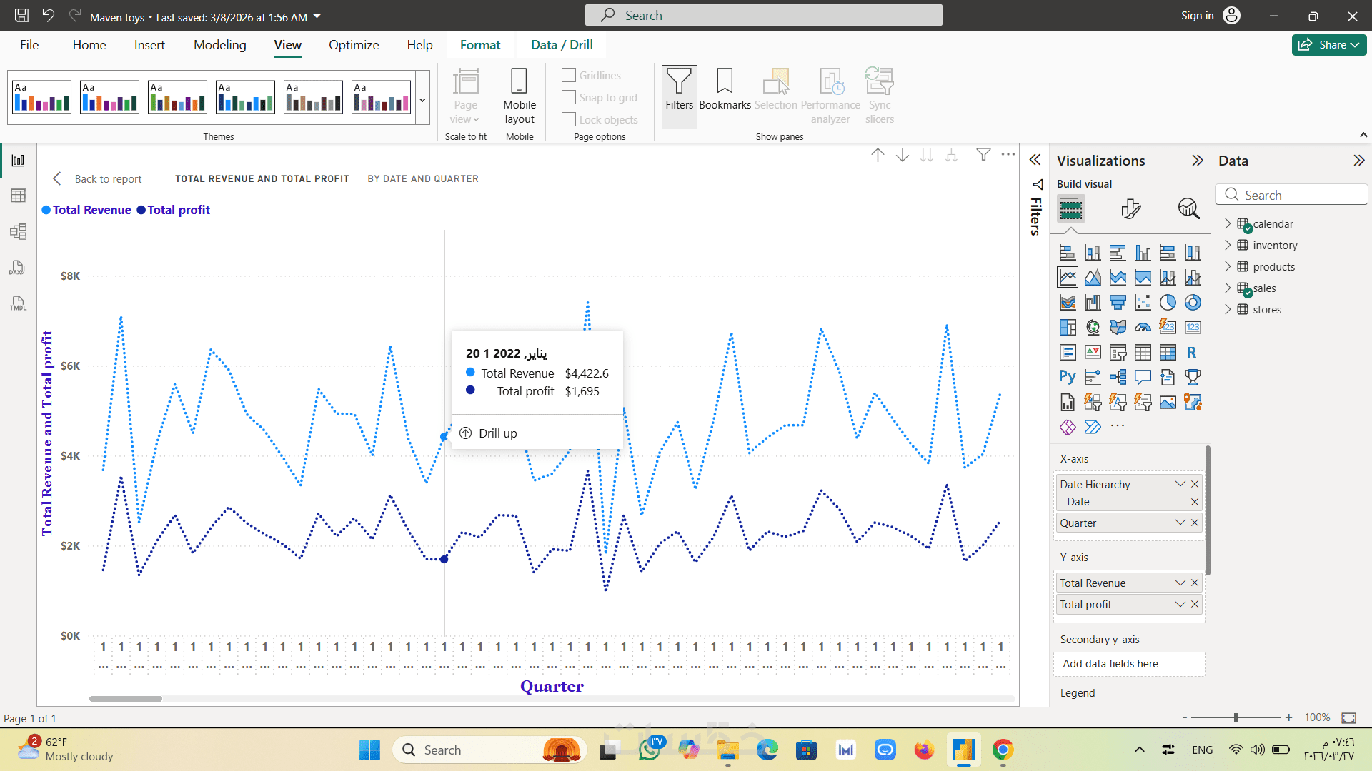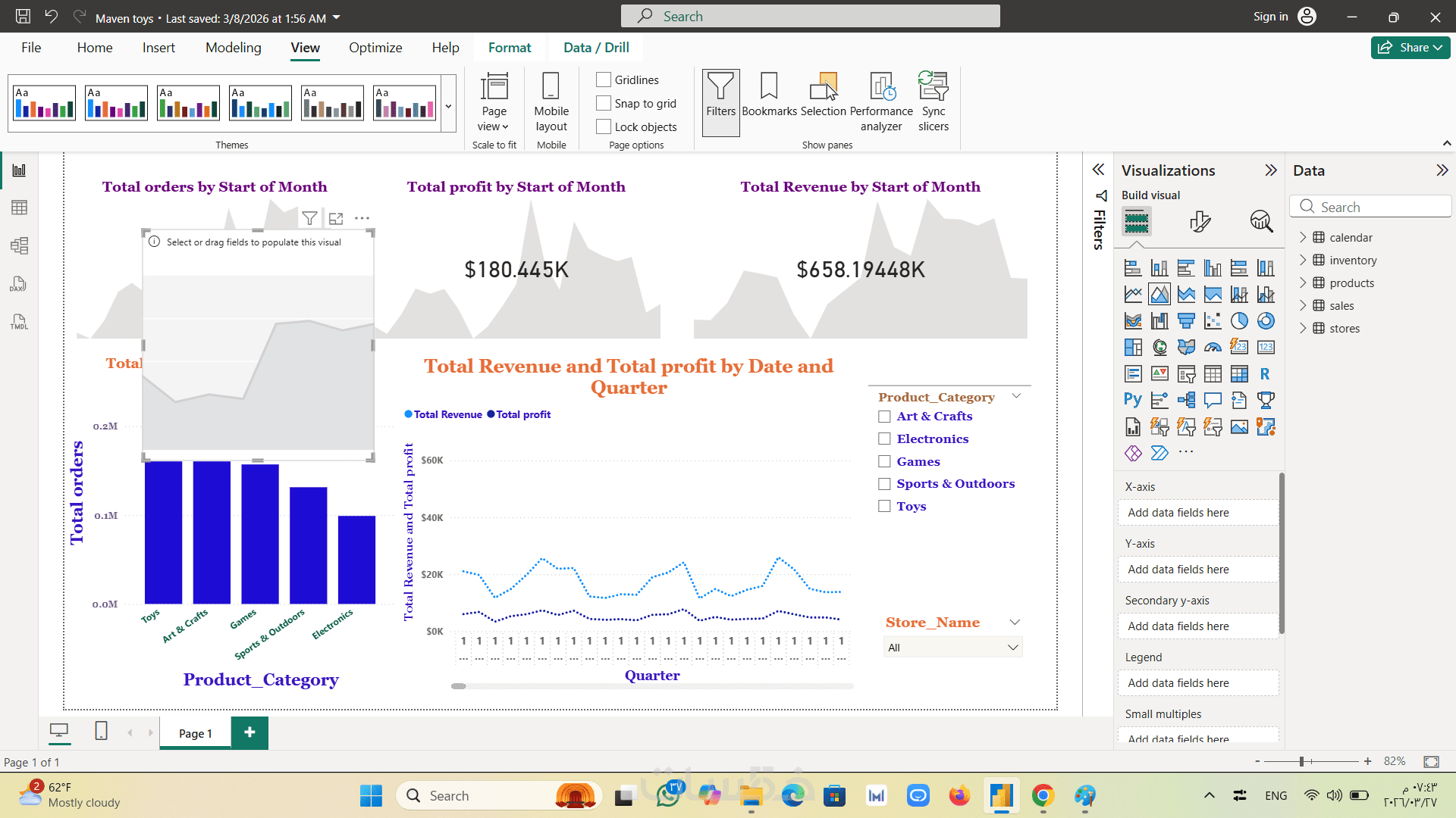 حتى 4 رسوم بيانية لعرض وتحليل بيانات المبيعات بشكل بصري.