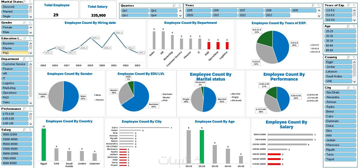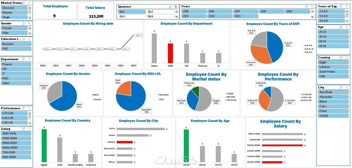 - ملف Excel يحتوي على لوحة معلومات تفاعلية جاهزة للاستخدام