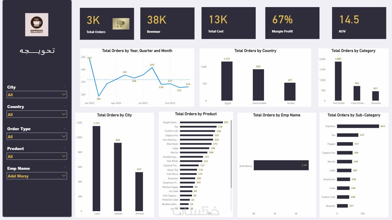 2 صفحه داش بورد مع KPI's 3 + 3 chart لكل صفحه