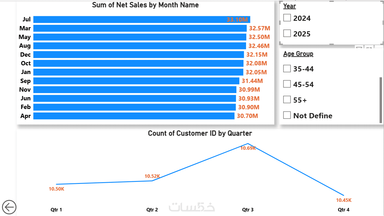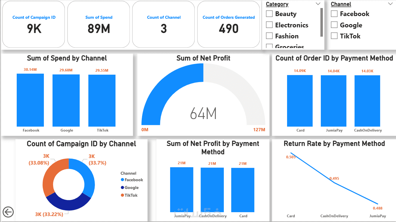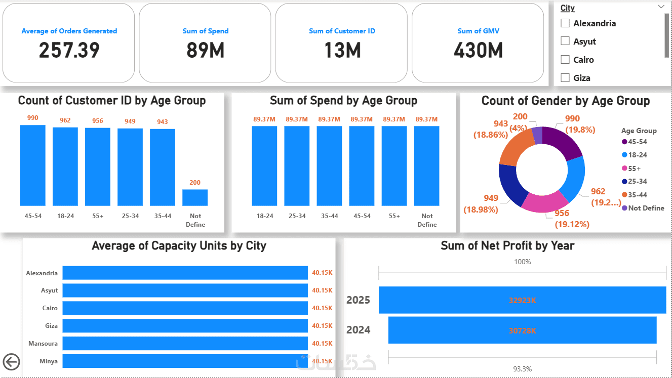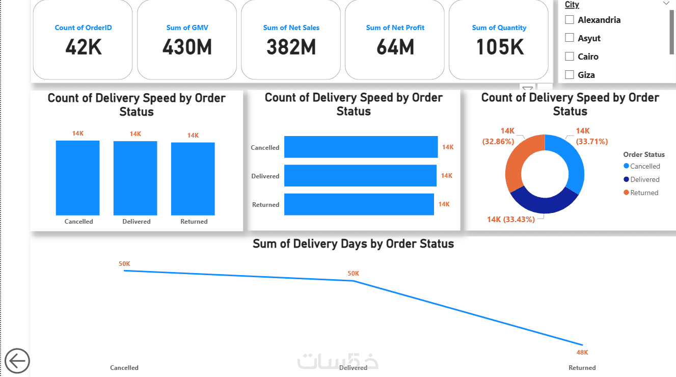 حلّلت كل بعد: الفئة، المدينة، القناة التسويقية، حالة الطلب.