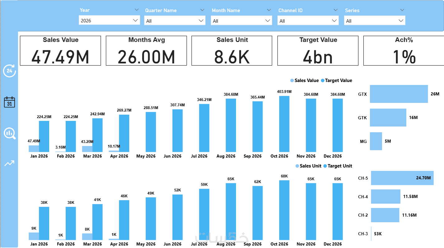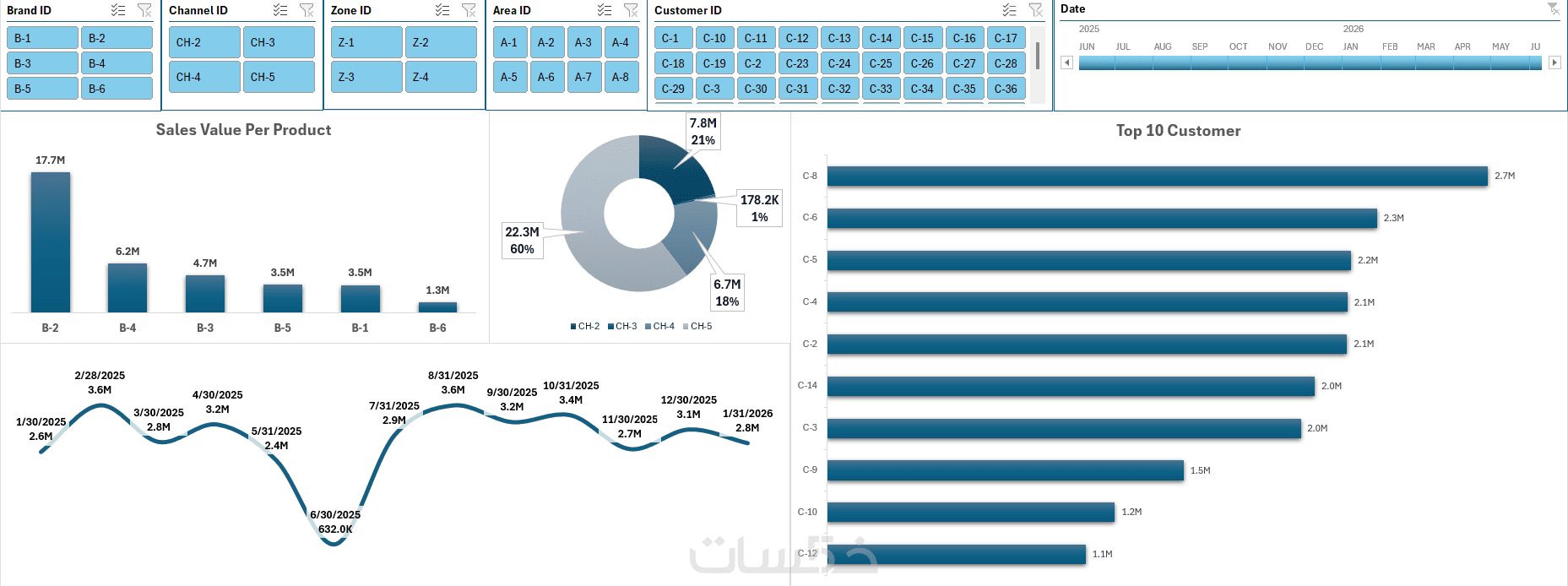 أنا أساعدك في تحويل بياناتك الخام إلى Dashboard احترافي وتفاعلي يعرض أهم المؤشرات في شكل بسيط وواضح وسهل الاستخدام.