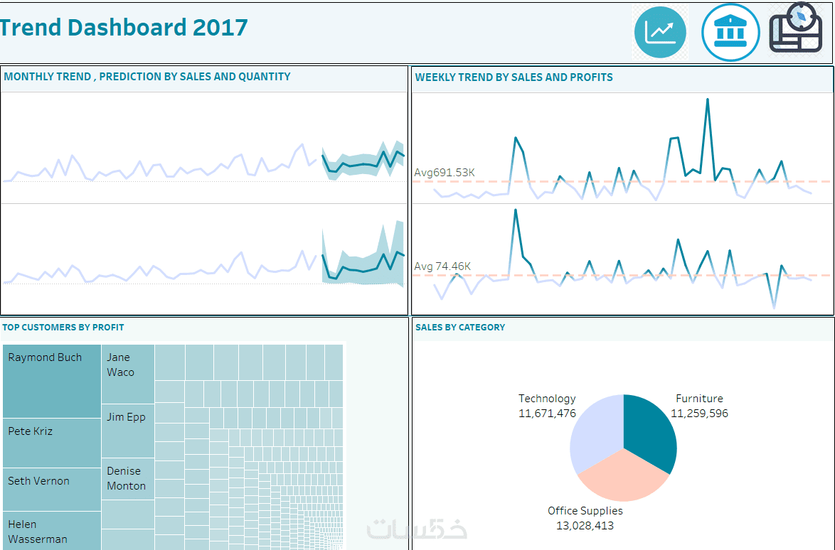 تصميم Dashboard تفاعلي احترافي باستخدام Power BI أو Tableau أو Excel أو Python لعرض البيانات بشكل واضح وسهل الفهم.