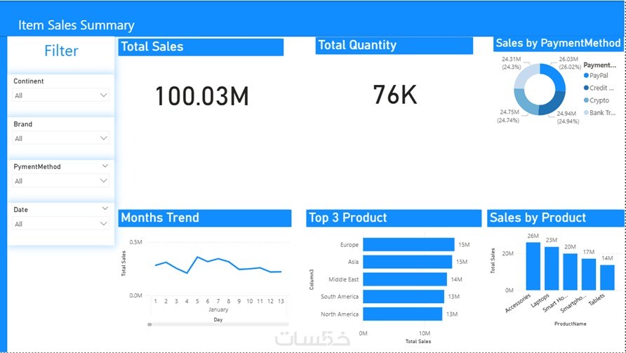 في نهاية العمل، ستحصل على ملف المشروع بصيغة (pbix) يحتوي على لوحة معلومات تفاعلية قابلة للتعديل والتطوير حسب احتياجاتك.