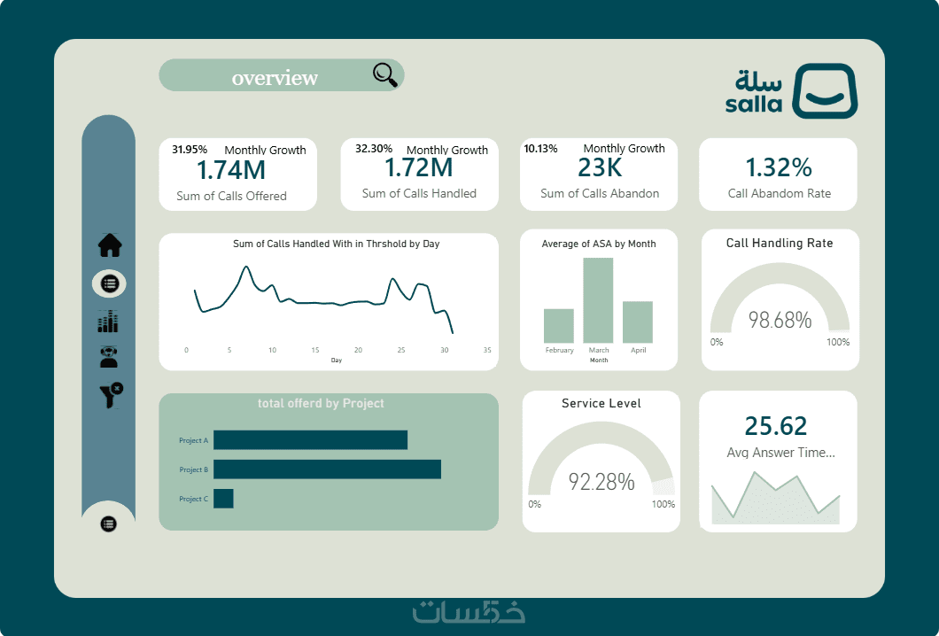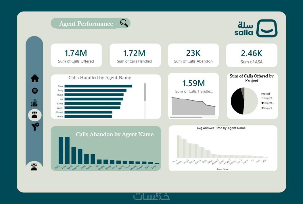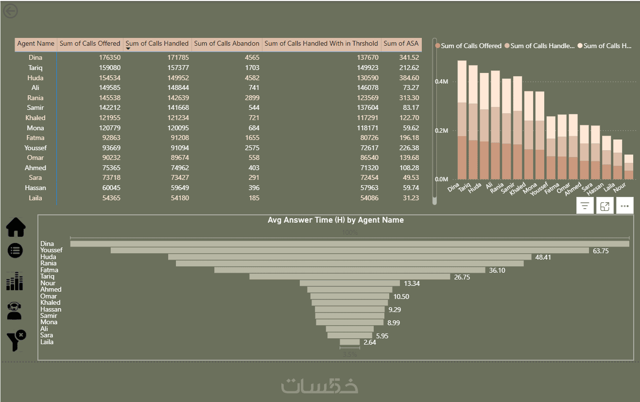 تحليل مؤشرات الأداء (Advanced KPIs): لن أعطيك مجرد رسوم، بل سأحسب لك معدلات النمو الشهري (MoM)، كفاءة فريق العمل، ونسبة الفقد في المكالمات والطلبات (Abandon Rate).