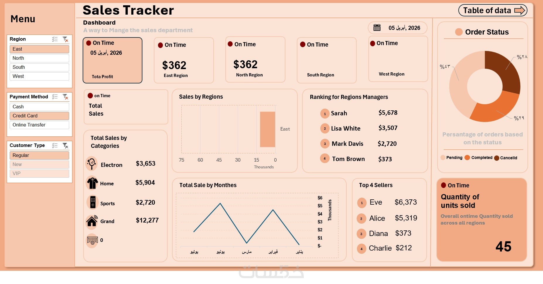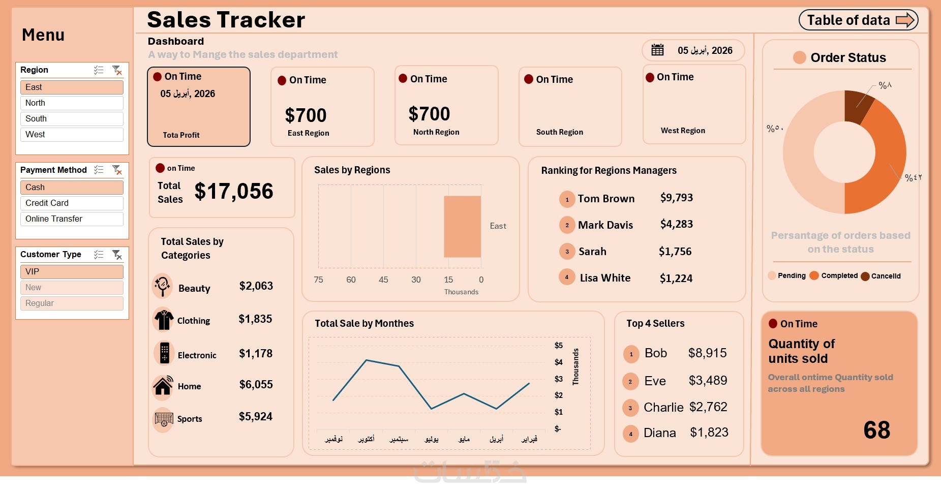 أقدم لك خدمة تصميم داشبورد تفاعلي احترافي على Excel لمساعدتك في تحليل البيانات، متابعة الأداء، واستخراج المؤشرات المهمة بشكل بصري واضح وسهل.