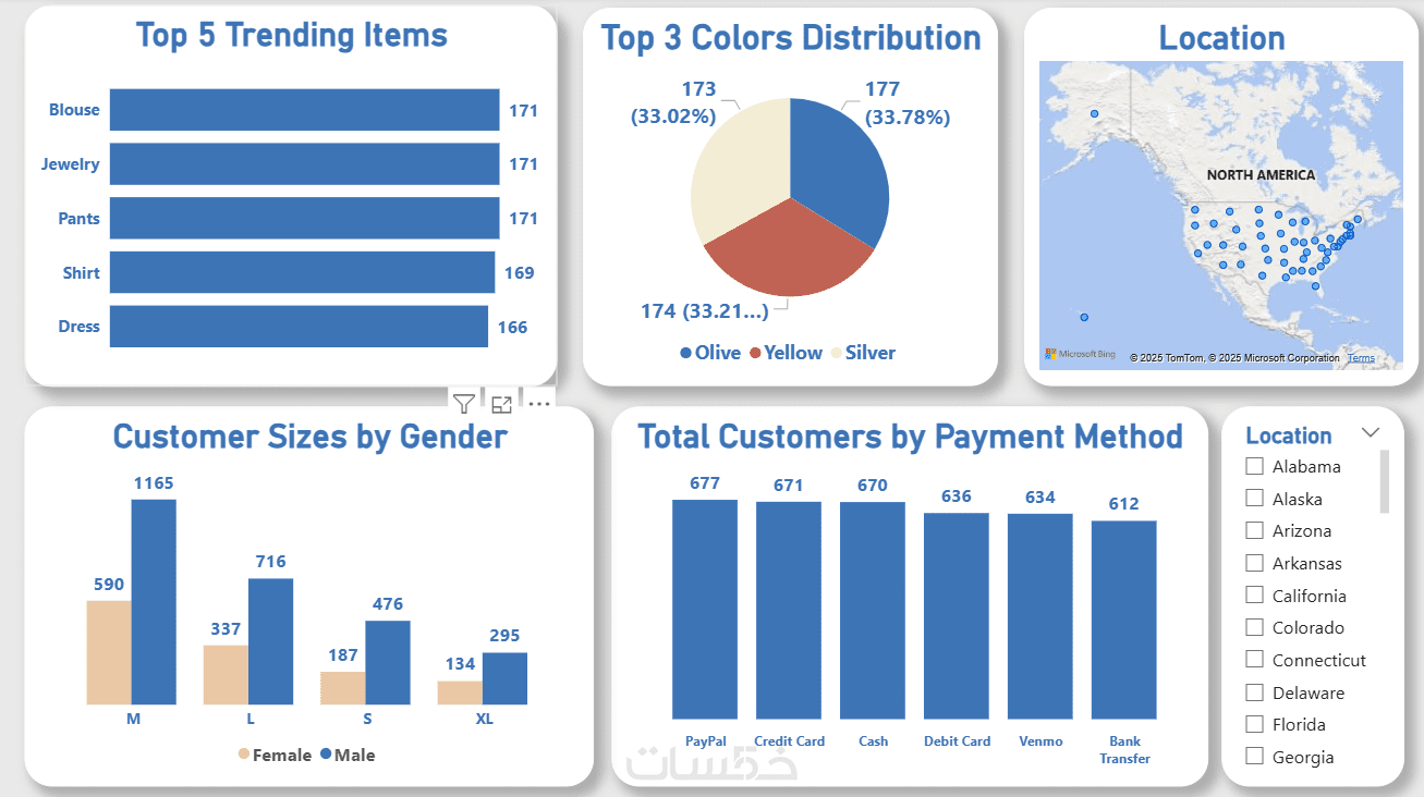 - فلاتر تفاعلية (Slicers) للتحكم في عرض البيانات