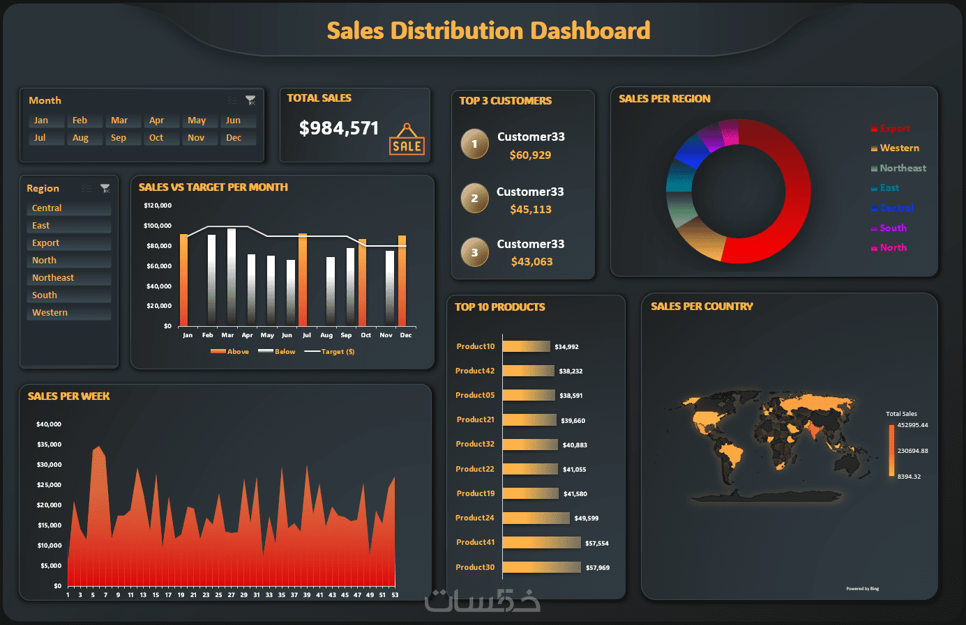 - عناصر تصفية (Slicers): بالعدد المتفق عليه لضمان سهولة التحكم والتفاعل مع البيانات.