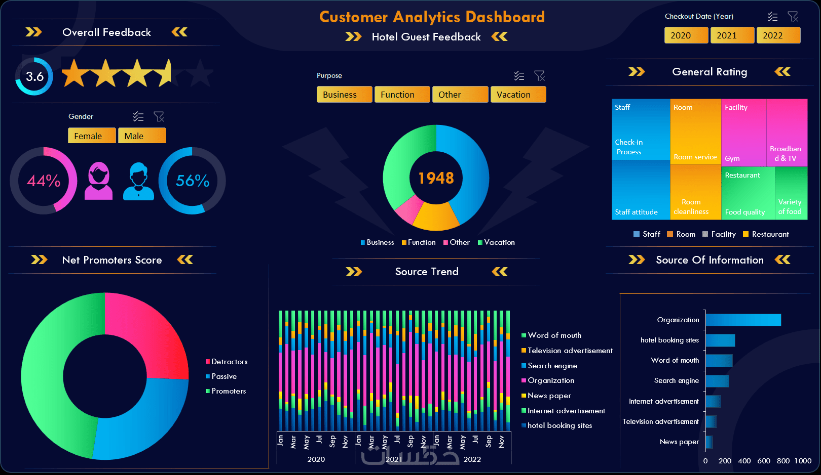 • تصميم تقرير تفاعلي (Dashboard) حتى 3 صفحات، يتضمن العناصر التالية: