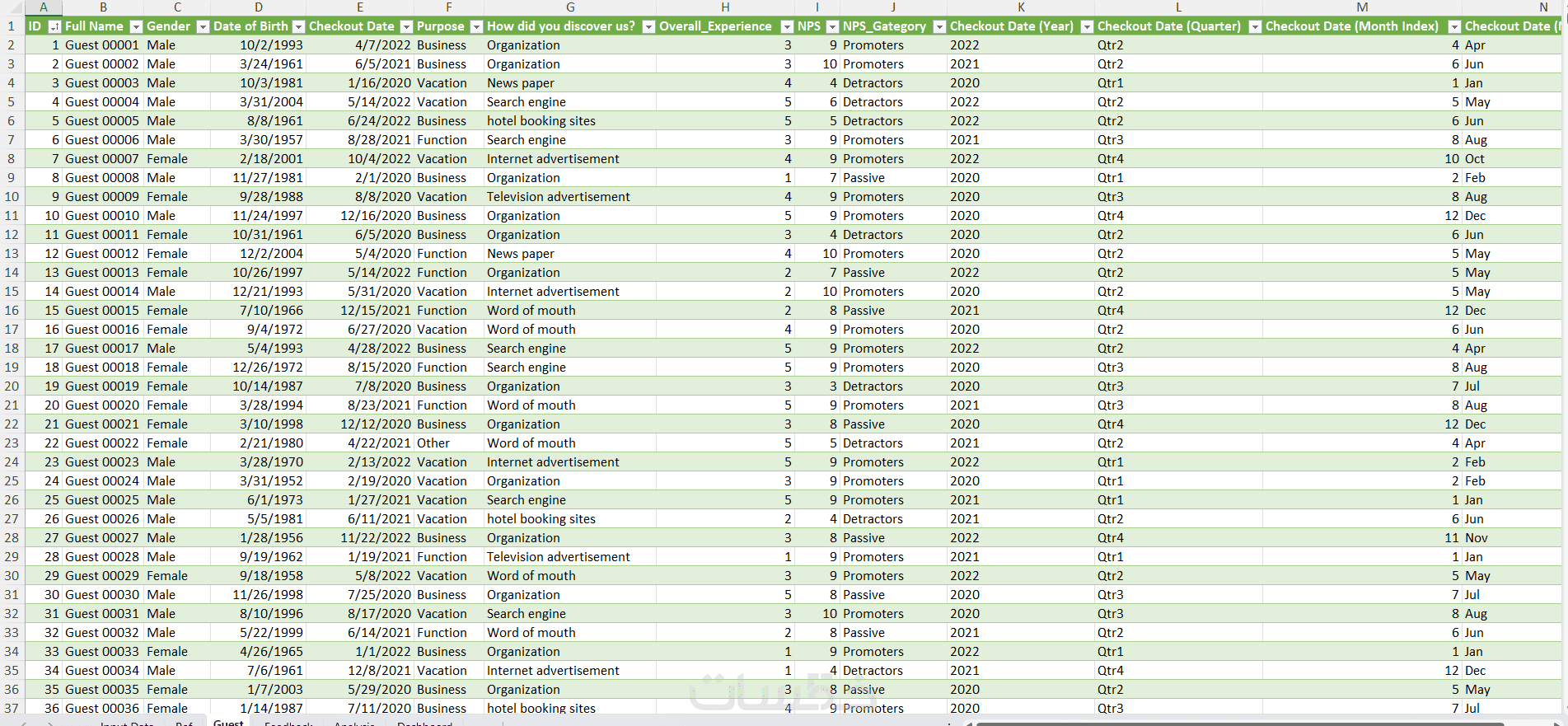 • ملف Excel مرتب ومنظم يحتوي على البيانات التي تم تنظيفها وتحليلها.