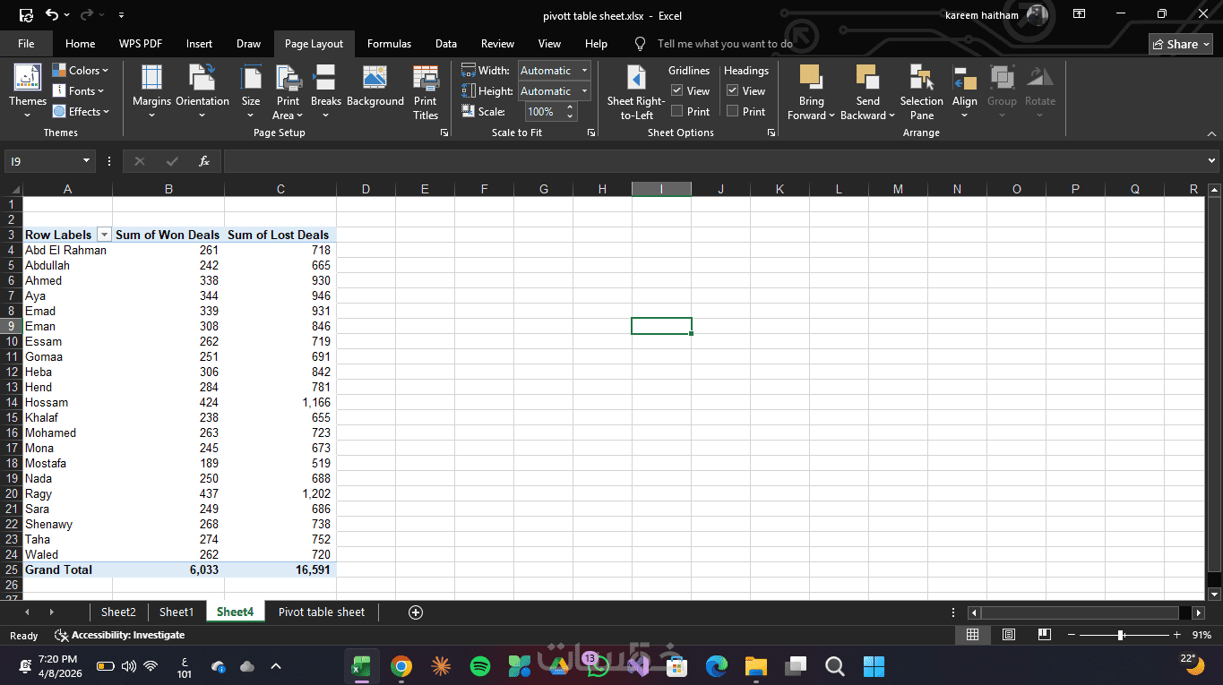 استطيع انشاء pivot table يقوم بتلخيص البيانات لاتخاذ القرار المناسب
