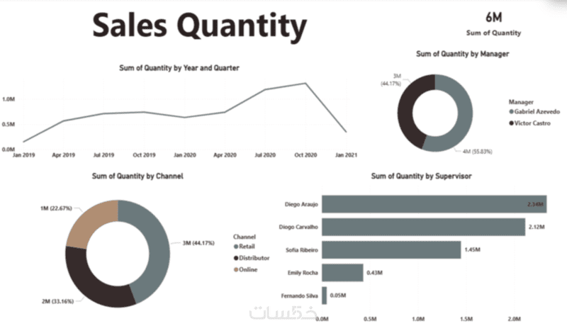 تقرير بصري يحتوي على رسوم بيانية ديناميكية (Charts) وفلاتر (Slicers) تتيح لك التنقل بين البيانات واستخراج التقارير بضغطة زر.