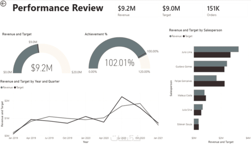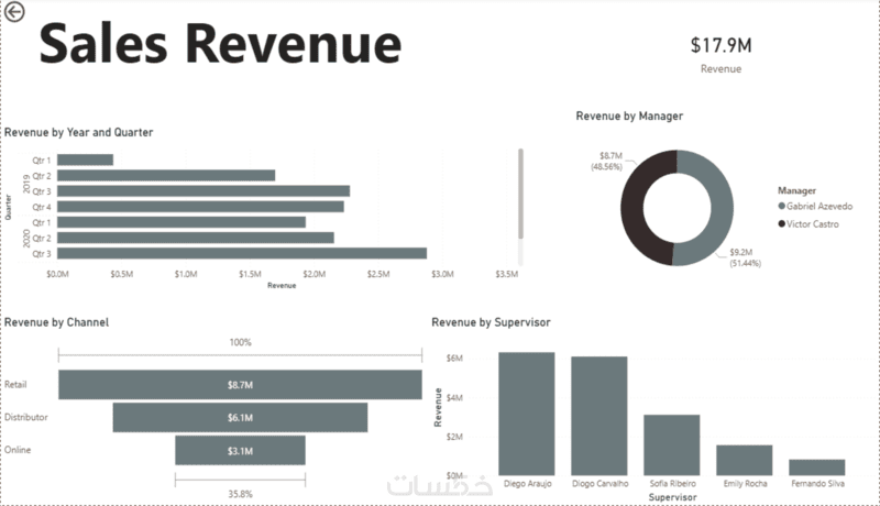 إمكانية الضغط على أي عنصر في الرسم البياني لرؤية تفاصيل محددة فوراً (مثلاً عند الضغط على اسم مدير معين، تتحدث كافة الرسوم لتظهر مبيعاته فقط).