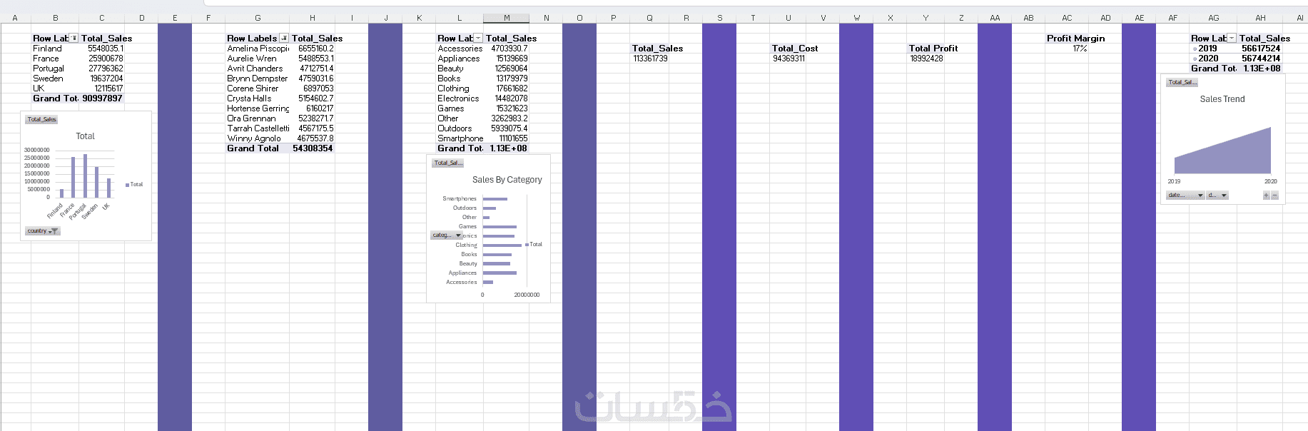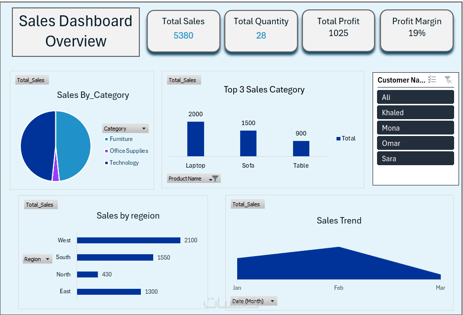 3. إنشاء Dashboard احترافية باستخدام Excel حتى 5 رسومات بيانيه (charts) تلخص أداء عملك بوضوح.