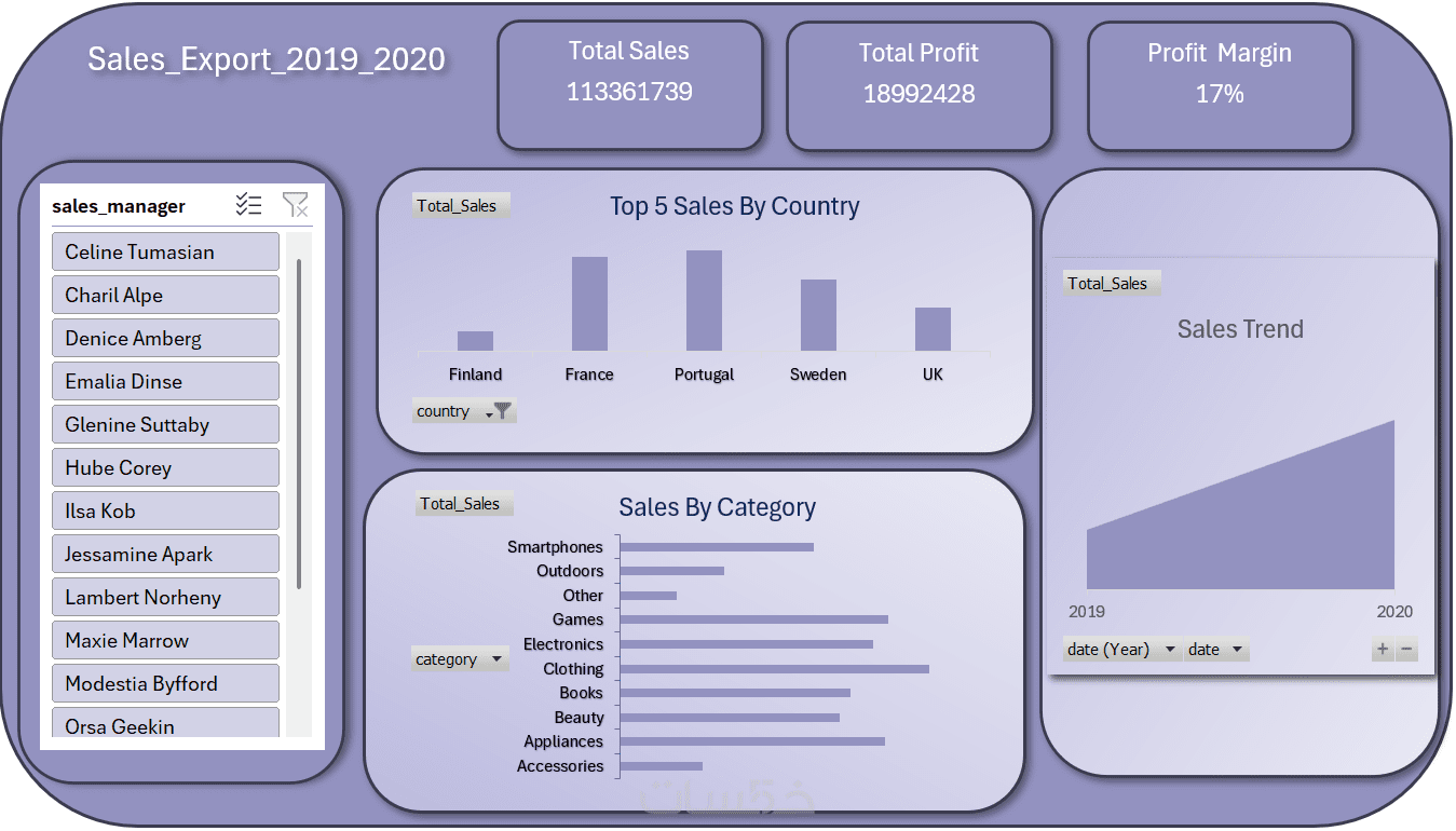 5. تفاعلية كامله : إضافة فلاتر ذكية (slicers) لسهولة التنقل بين أجزاء البيانات مثل التواريخ , الفروع أو الأقسام .