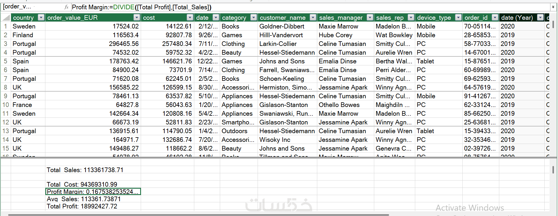 2-استخراج أهم مؤشرات الآداء (KPIs) باستخدام معادلات ال(Dax)بإستخدام Power Pivot.