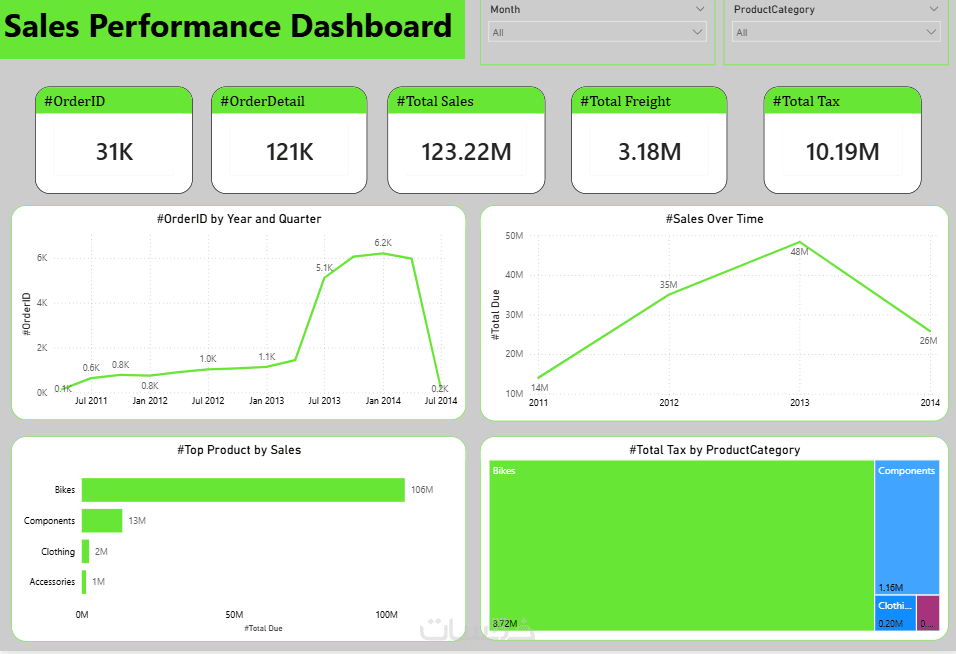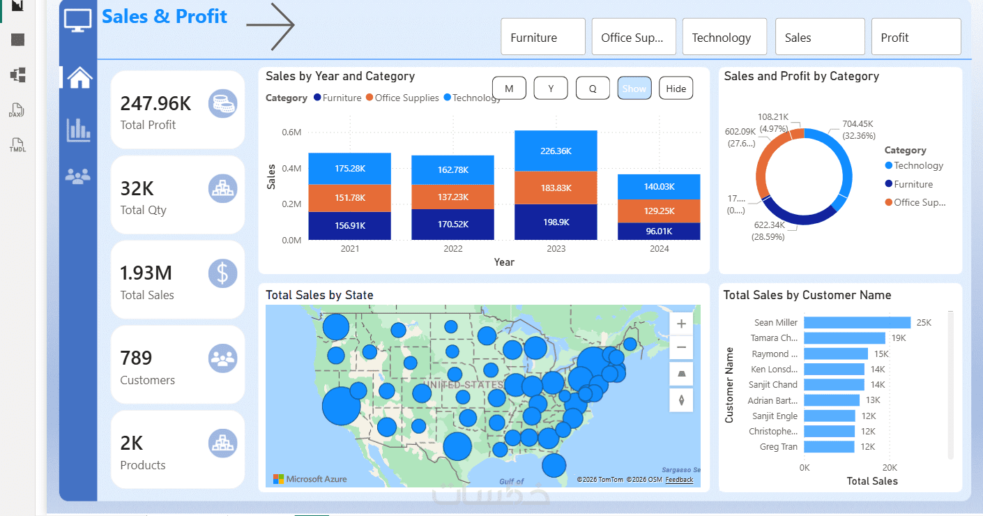 إمكانية التصفية (Slicers/Filters) للتنقل بين أجزاء البيانات.