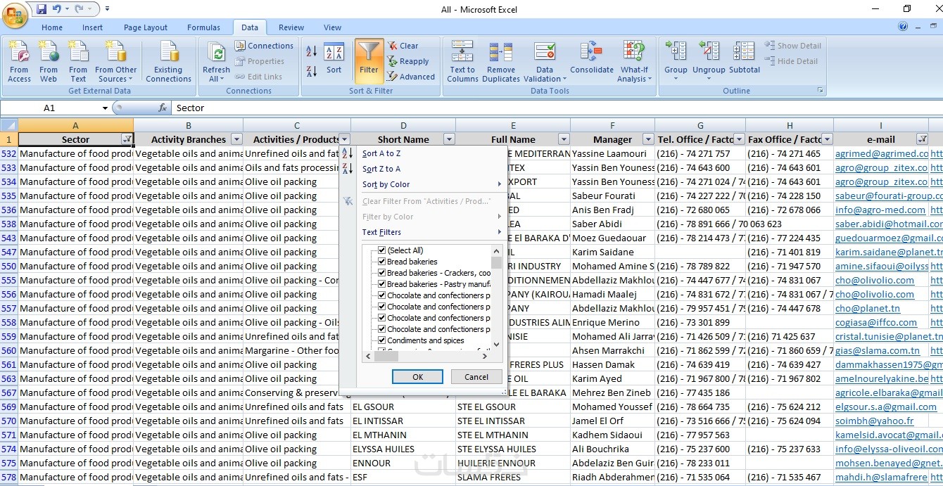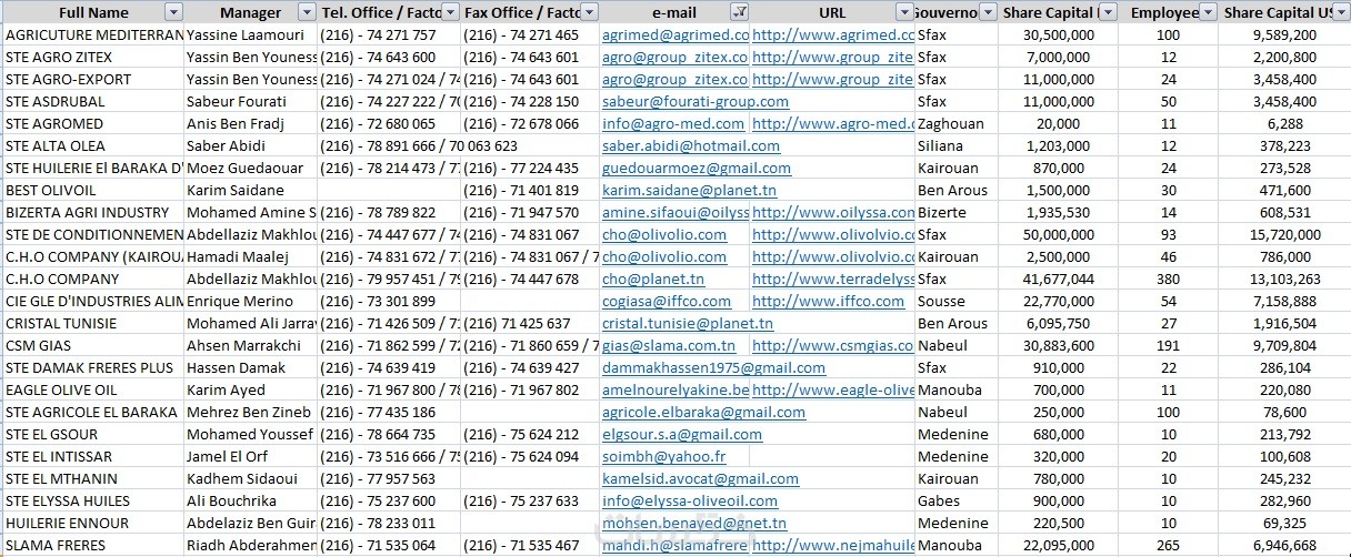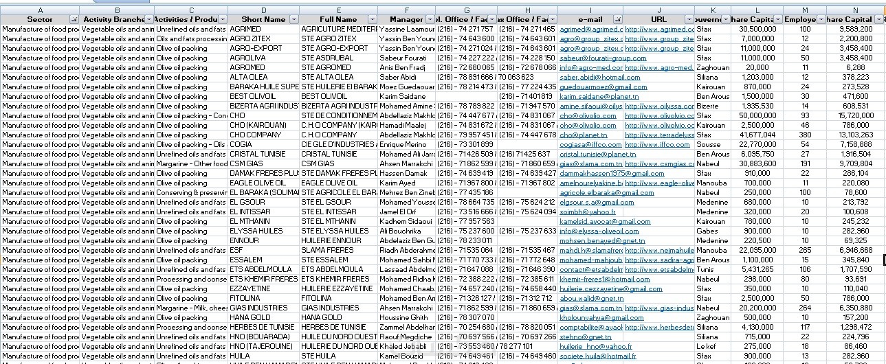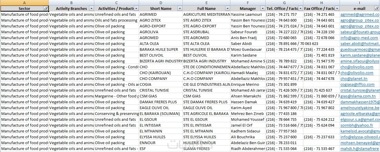 سنقدم لكم ملف إكسل دقيق وبياناته مستخرجة من مصادرها الرسمية، تم تنظيمه بشكل واضح ودقيق، سهل الاستخدام وقابل للفرز والتعديل فيه بيانات 571 من شركات ومصانع الأغذية في نونس ويشمل البيانات التالية: